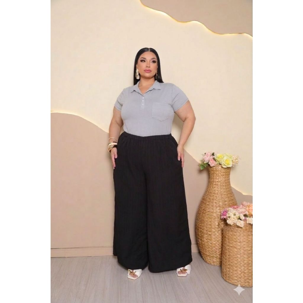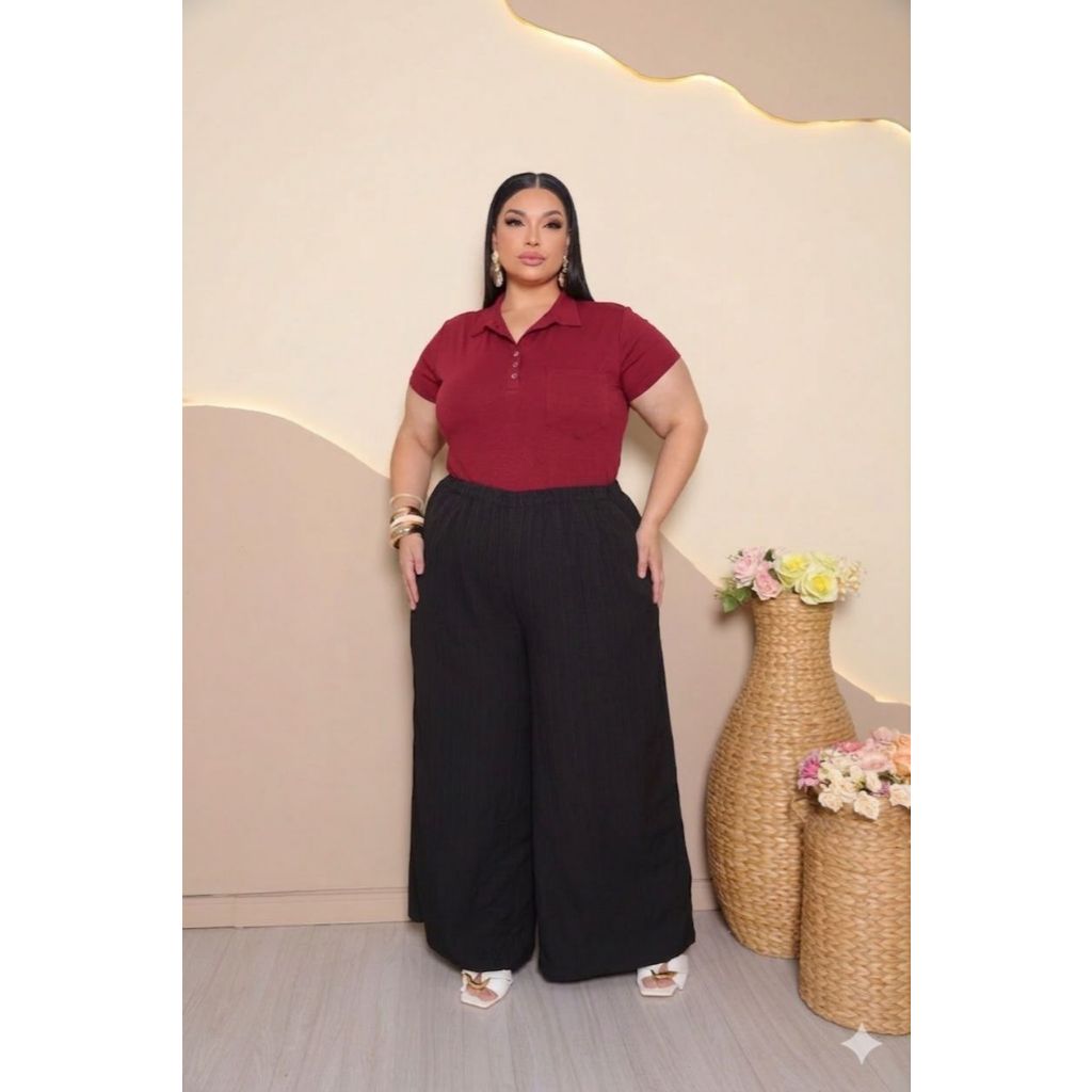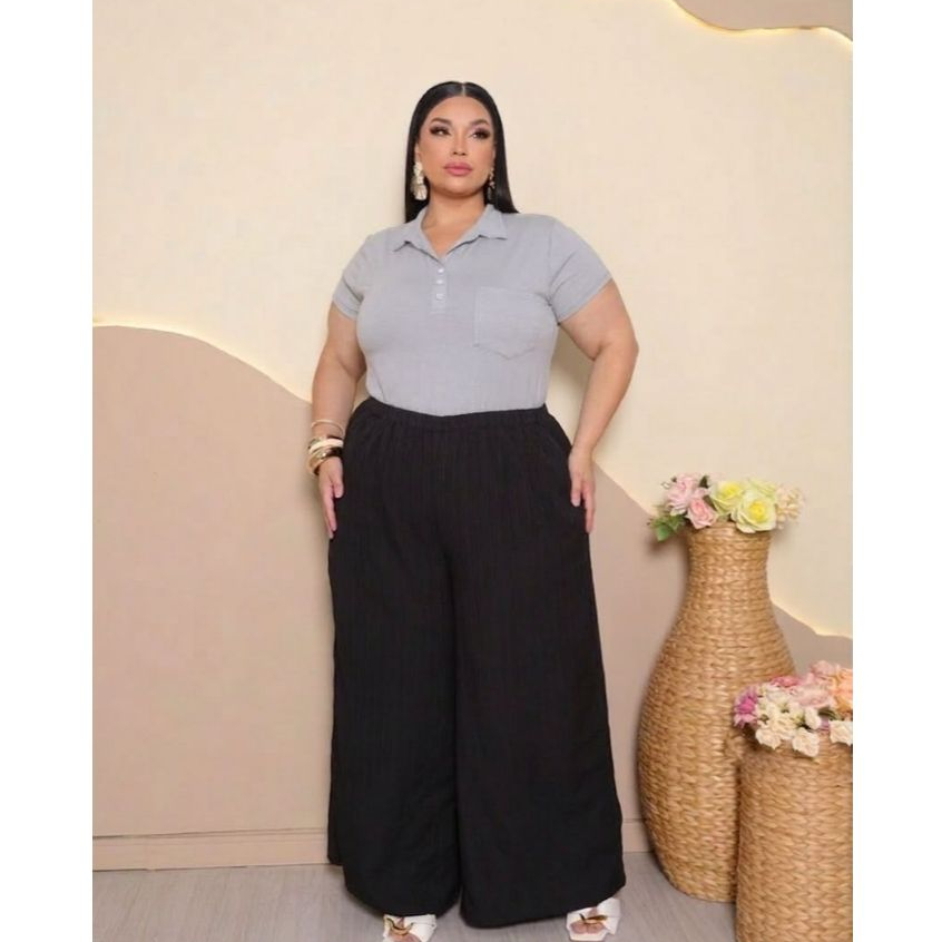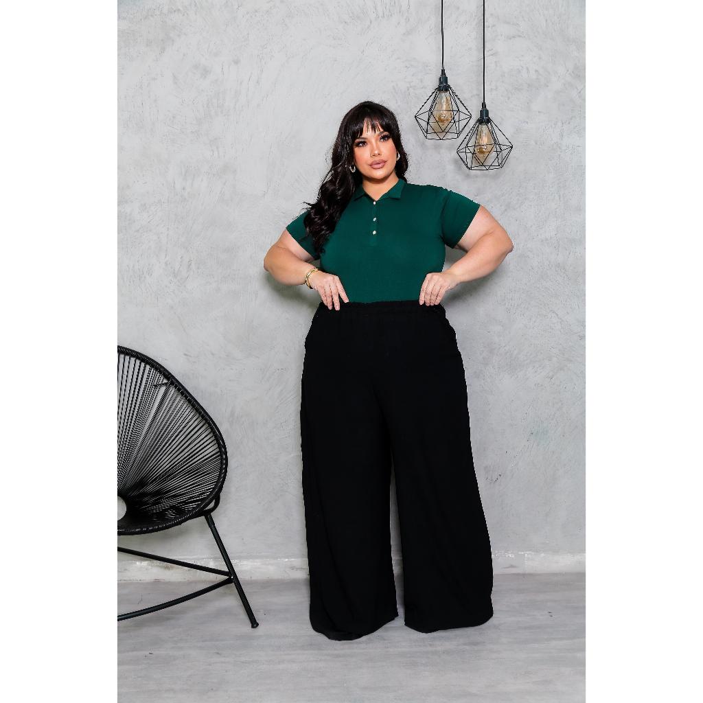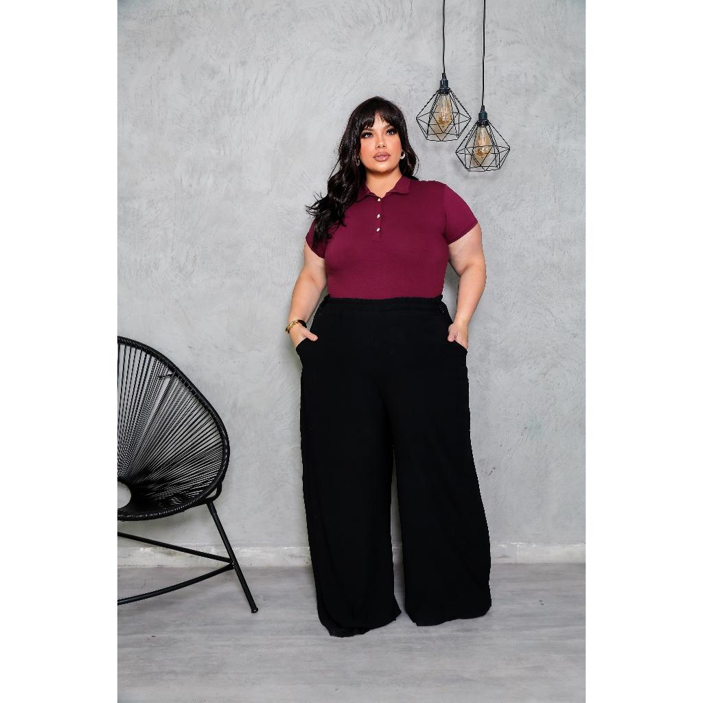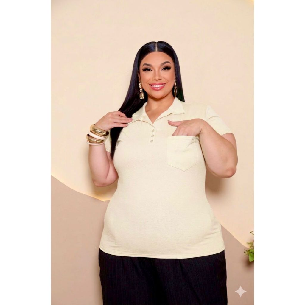 Blusa Plus Size Feminina Manga Curta com Gola Colarinho Polo Botão Regulável Plus Size