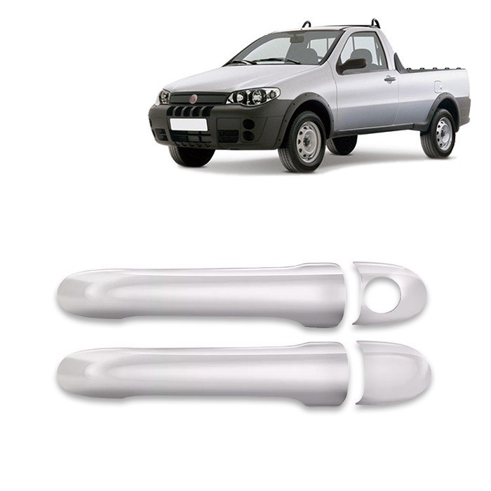Par Aplique Cromado para Maçaneta Externa Palio Strada G3 G4 2005 á 2019 Nova Strada 2020 2021 2022 2023 2 Portas