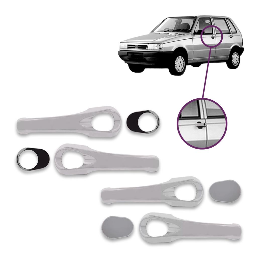 Kit Apliques Cromados Cobre Capa Maçaneta + Par Cobre Capa Retrovisor Uno 2001 á 2005