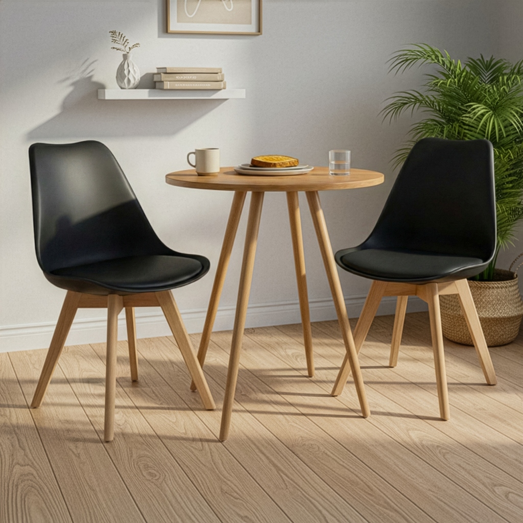 Mesa Sofia Redonda Freijó 60 Cm MDF + 2 Cadeiras Leda