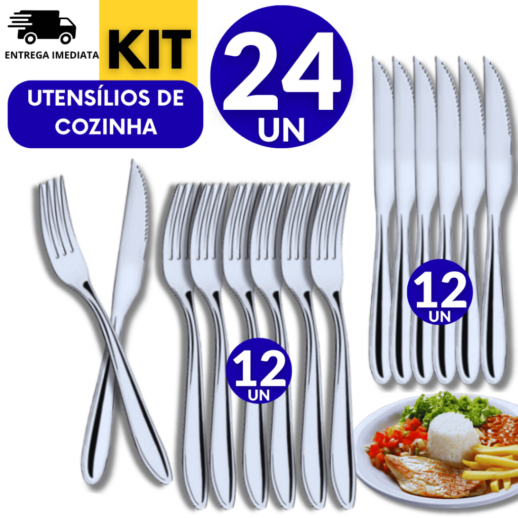 80 Peças Talheres Inox 40 Faca 40 Garfo Casa Cozinha Restaurante Buffet Qualidade Resistência Utilidades