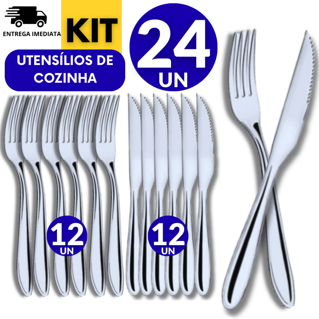 Kit Jogo Conjunto 48 Talheres Inox Multiuso 24 Faca 24 Garfo Casa Cozinha Restaurante Buffet Qualidade Resistência