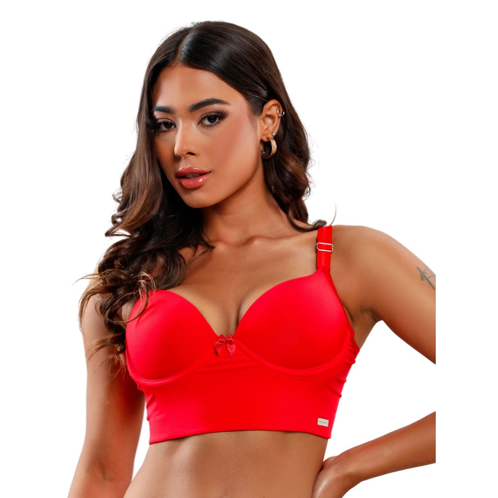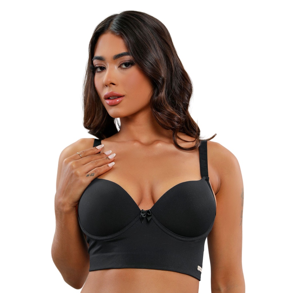 Sutiã Com Bojo Reforçado Liso Tres Fechos Poliamida