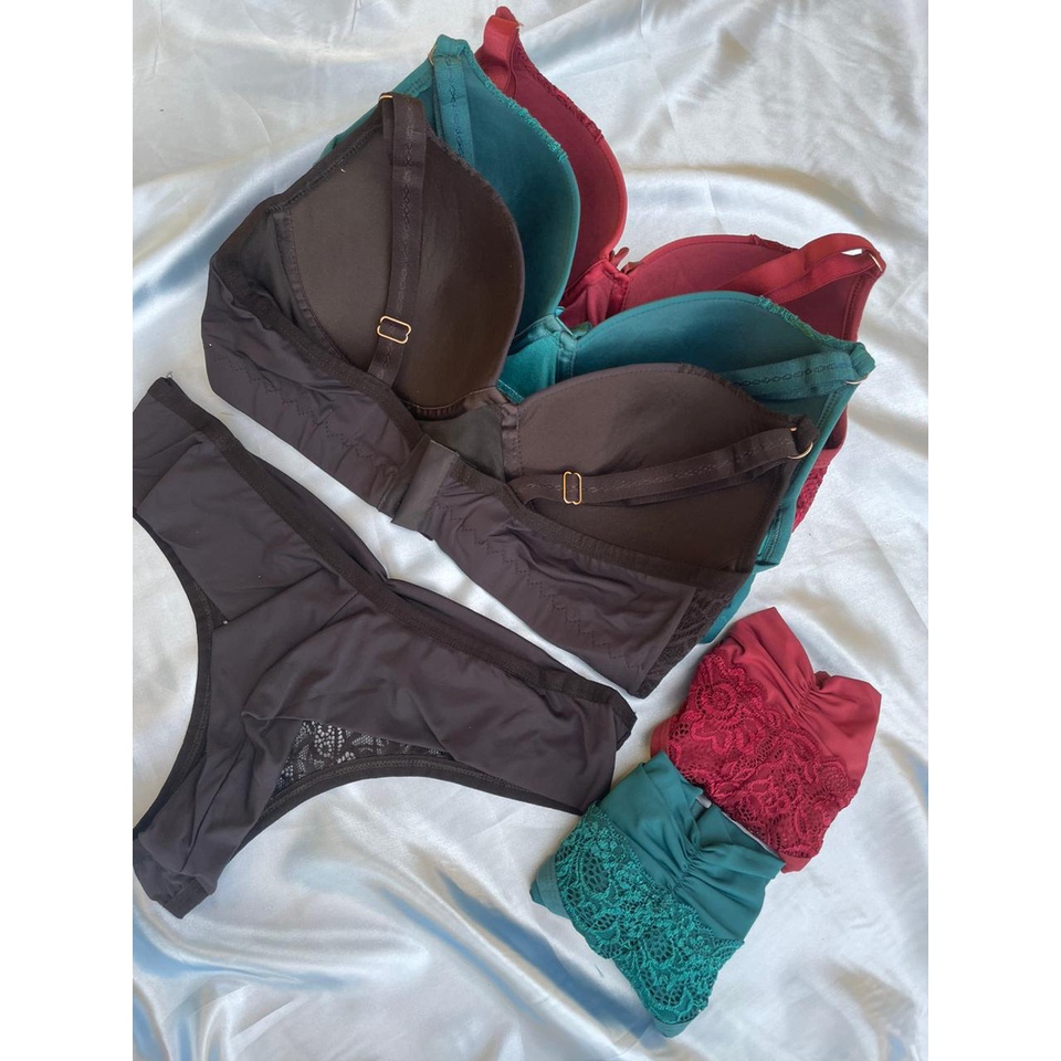 Kit com 3 Conjuntos de Lingerie Apaixonante com Detalhes em Renda (S3-00165)