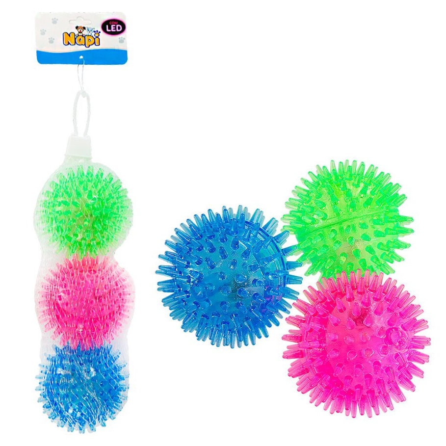 Kit 3 Bola Bolinhas Coloridas Com Barulho ao Apertar com Pisca LED para PET Sortida Para Cão e Gato