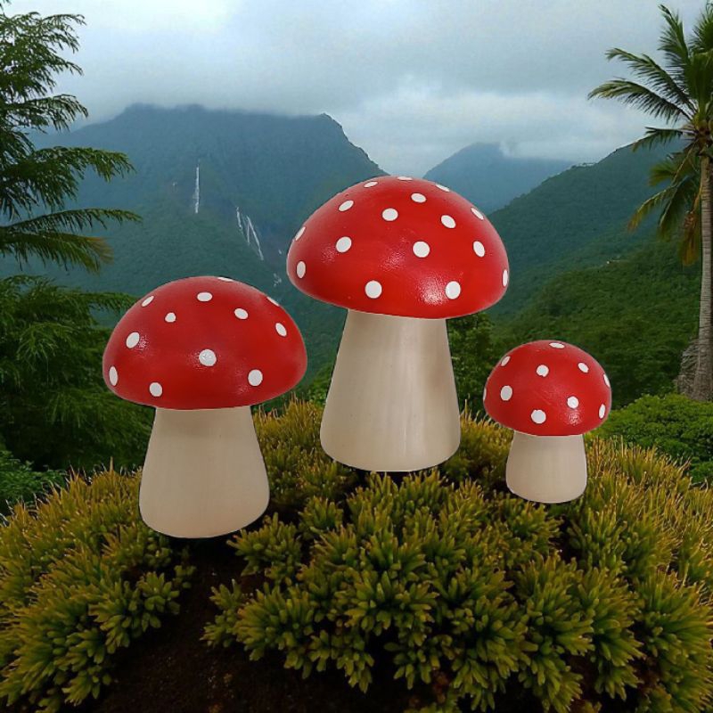 Trio de Cogumelos Vermelho de porcelana miniaturas enfeite decoração