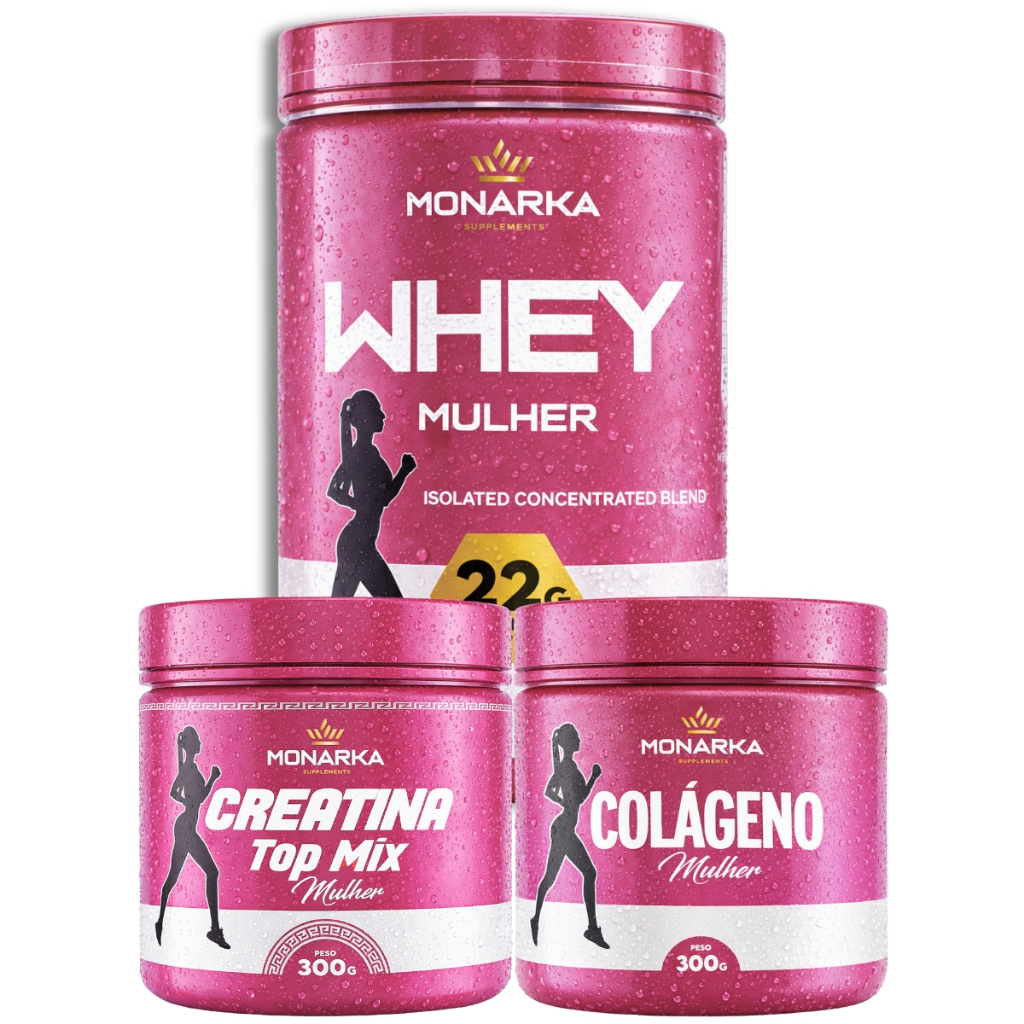 Kit Whey Protein Isolado Concentrado Blend + Creatina 300g + Colágeno Hidrolisado 300g - Feminino