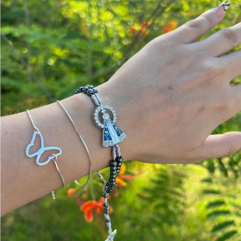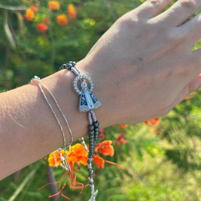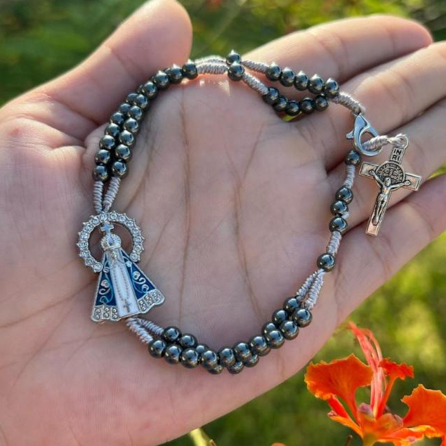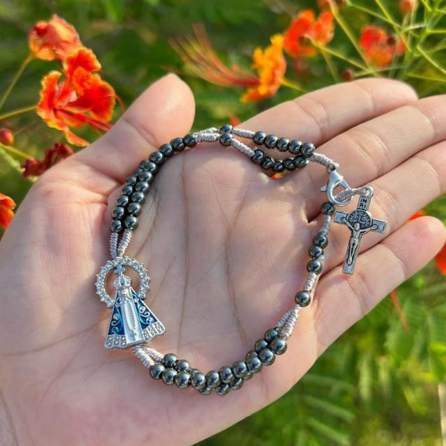 Terço de Pulso Pulseira Em Hematita Pingente De Nossa Senhora Aparecida