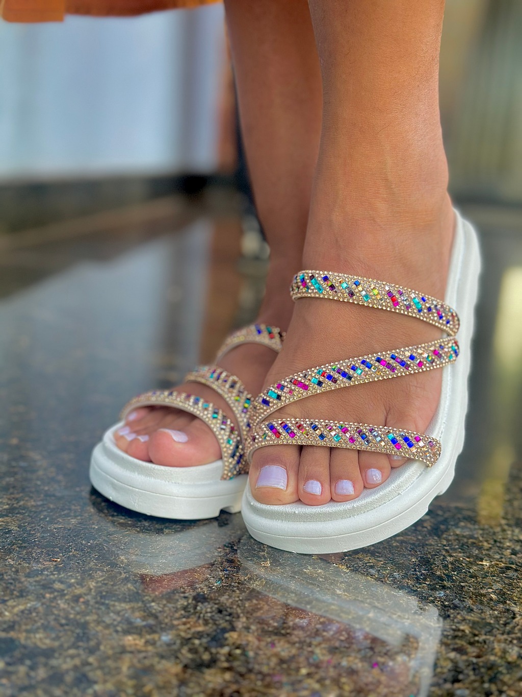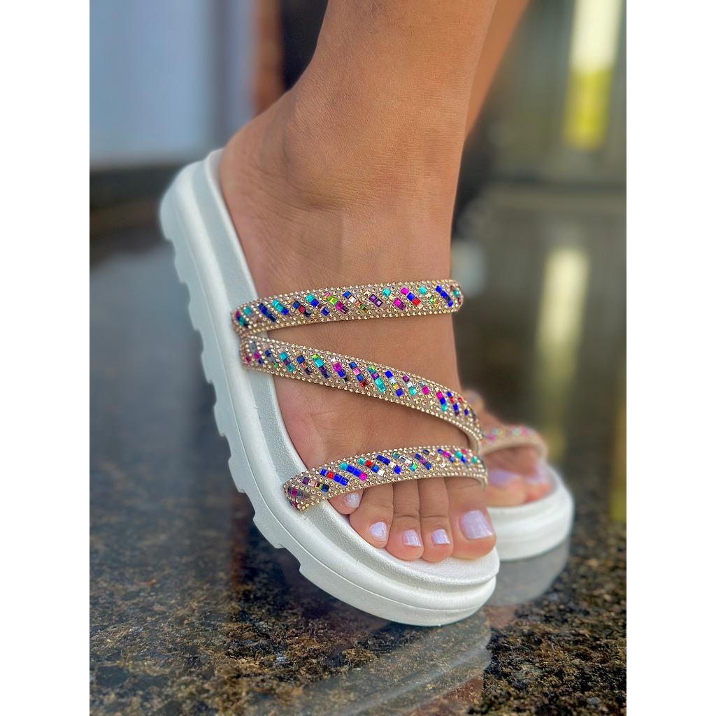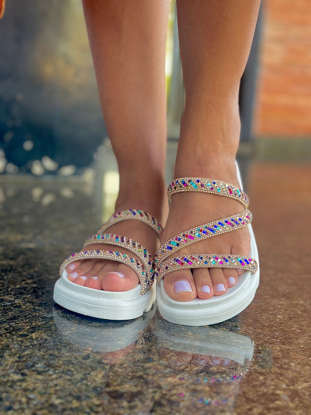 Birken Sandália Conforto Feminina Modelo Sara Strass Brilhante Paris