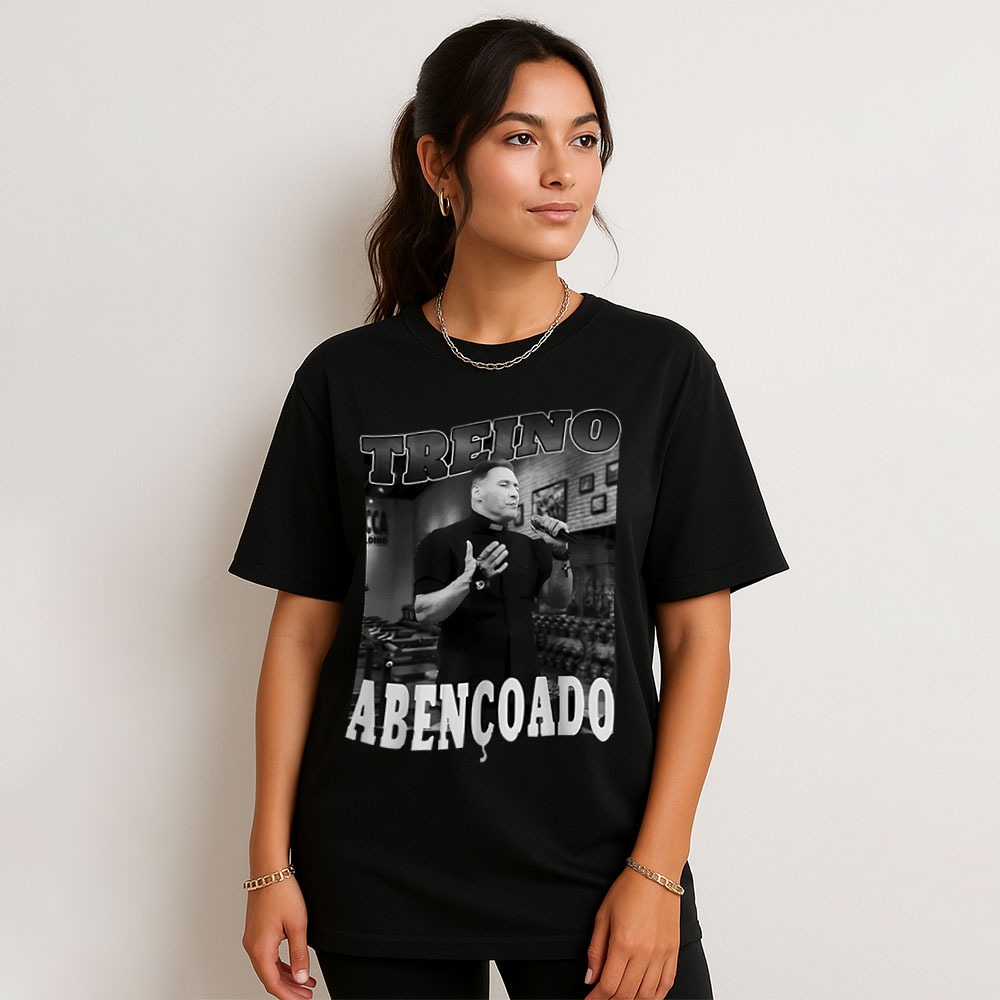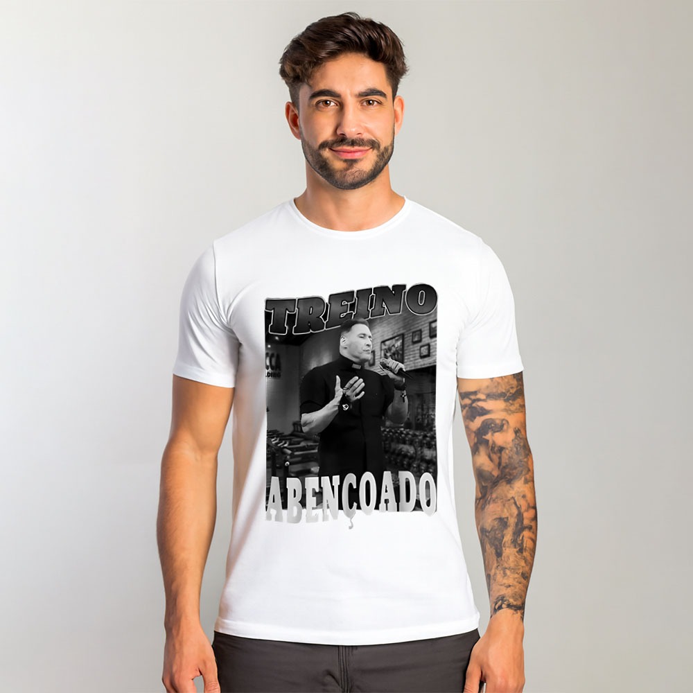 Camiseta Padre Marcelo Rossi Treino Abençoado Unissex Meme Engraçada