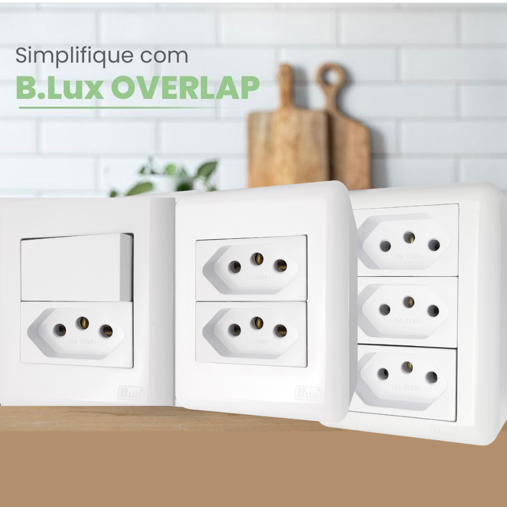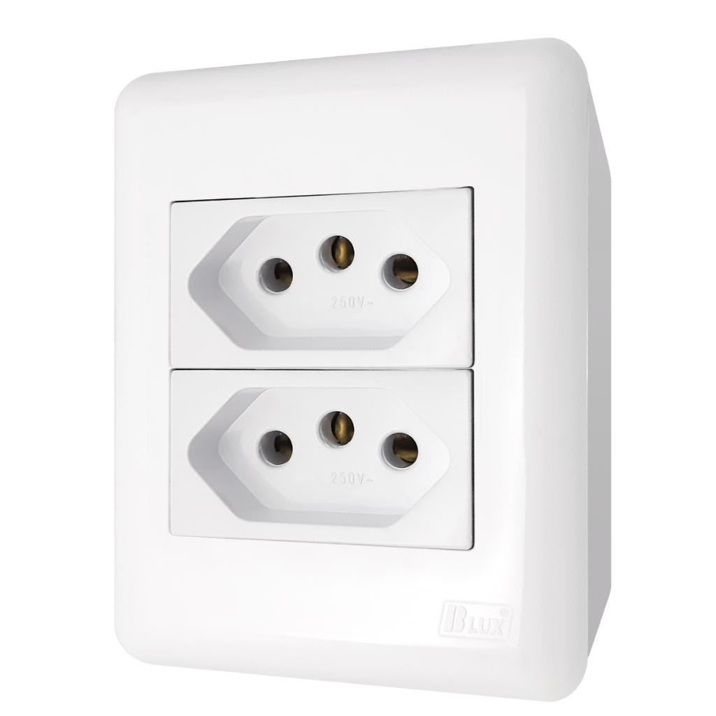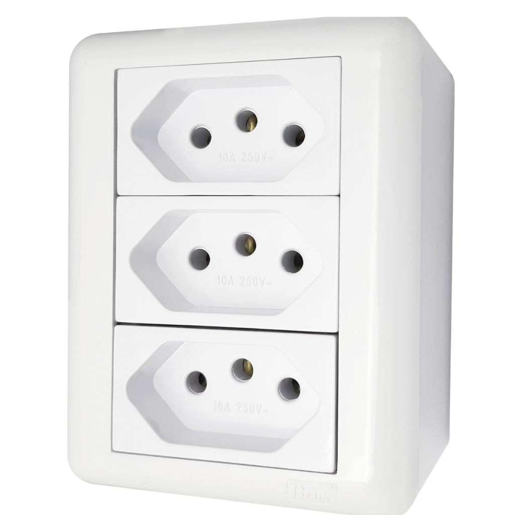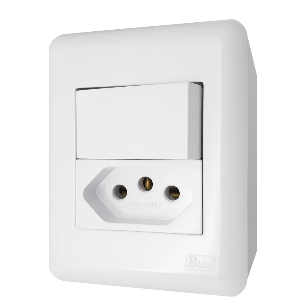 Conjunto Tomada e Interruptores 10a/20a Sobrepor Branca Sistema X Externa Blux Overlap