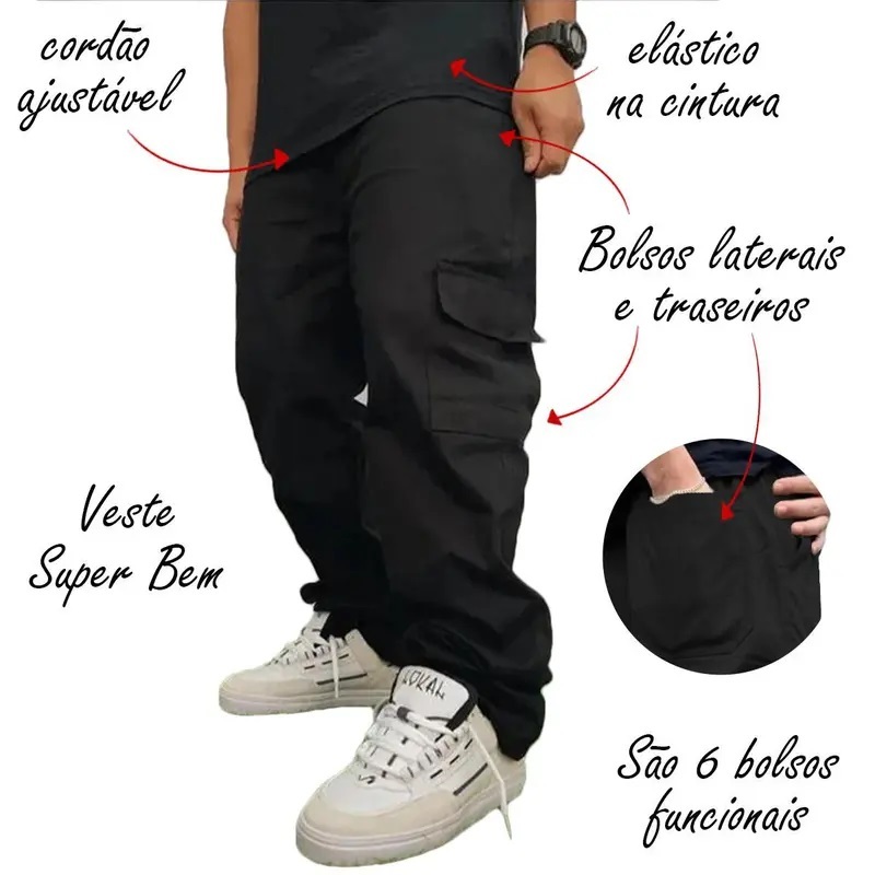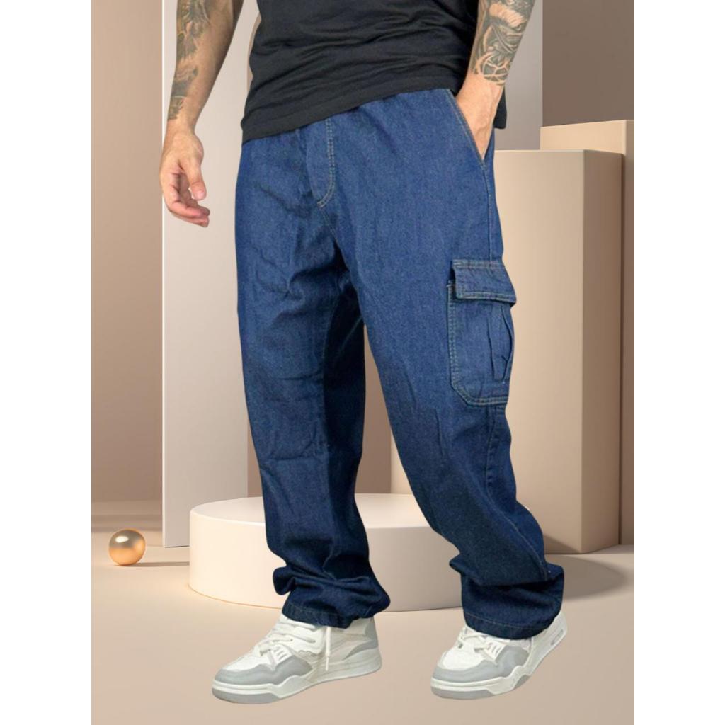 calça cargo sarja ou jeans masculino feminino larga 6 bolsos skate e outras cores calça cargo sarja