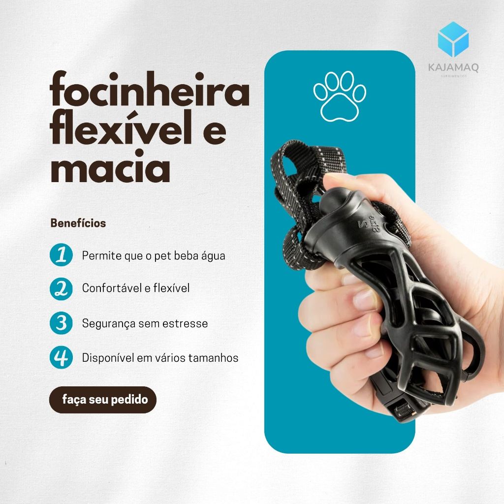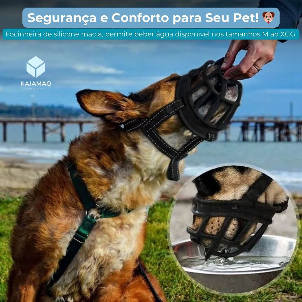 Focinheira de Silicone p/ Cães Grandes – Macia, Segura, Flexível e Permite Comer e Beber