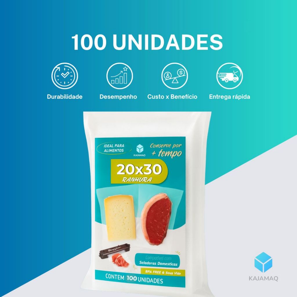 100 Unidades Embalagem 20x30cm Ranhura Gofrado Para Seladora A Vacuo Plastico Transparente Alimentos