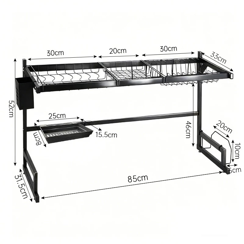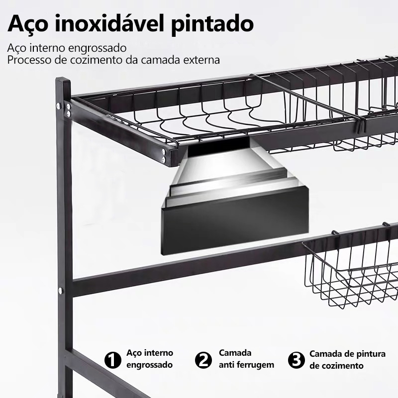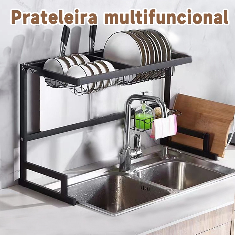 Escorredor Kitchen Rack Aço Inoxidável Organizador Louça Preto Escorredor De Louça Suspenso Bancada Autossustentável
