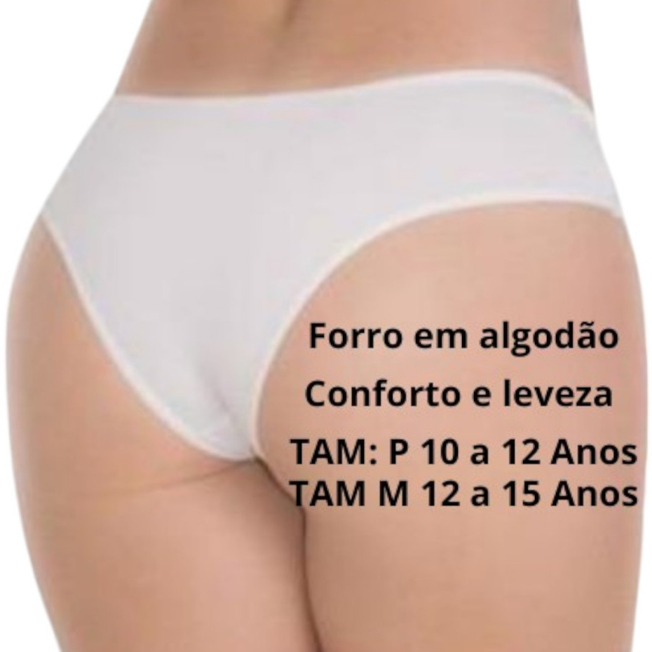 Kit 10 Calcinhas Juvenis Poliester microfibra Conforto Elasticidade para Crianças Meninas Moças