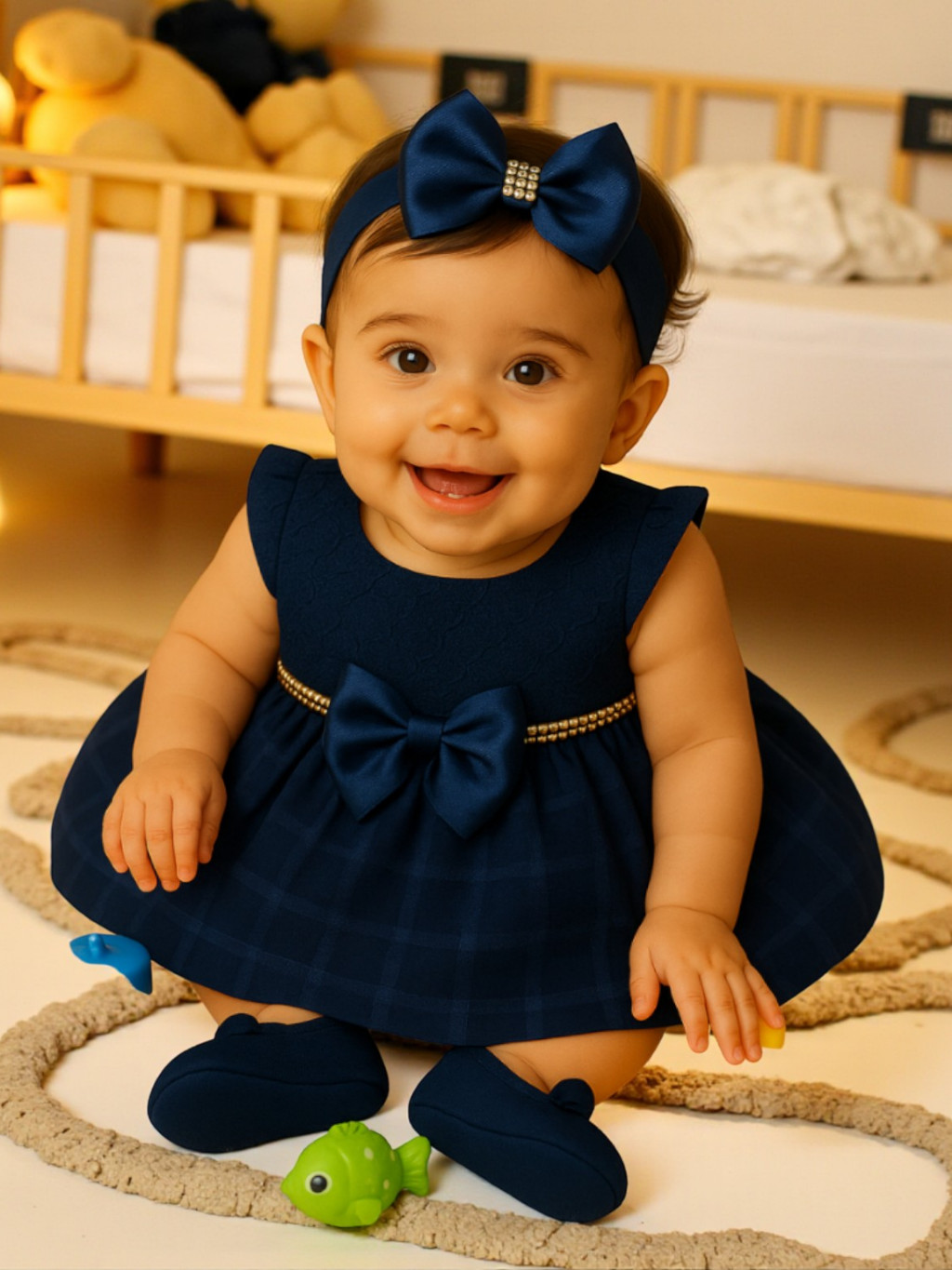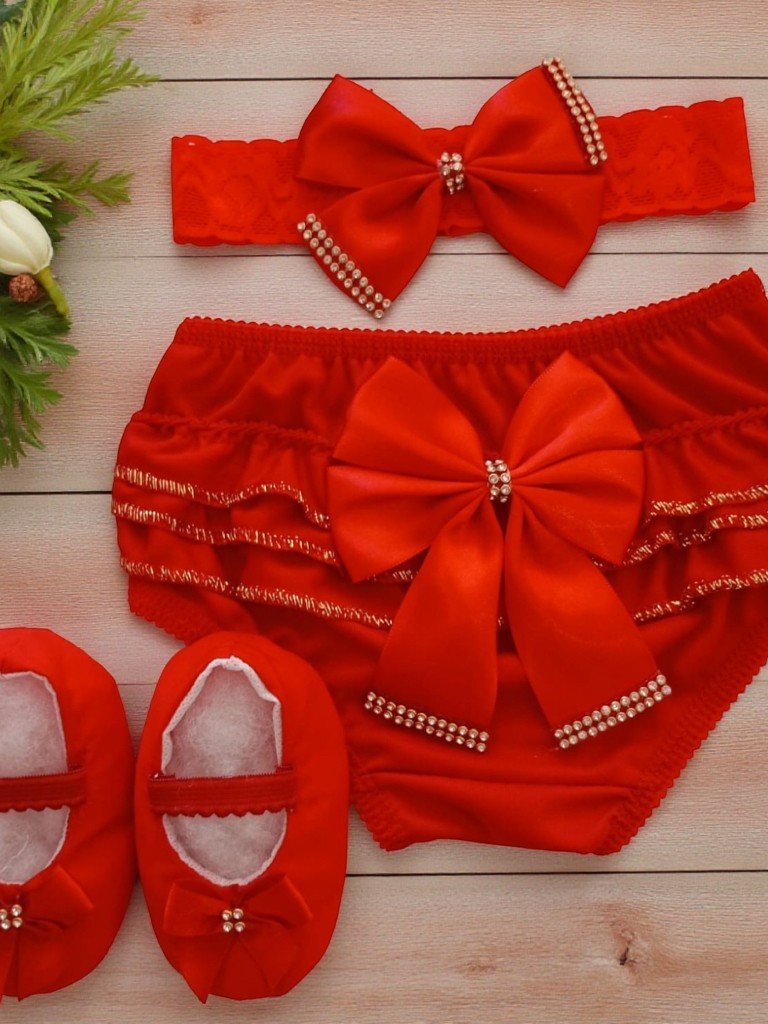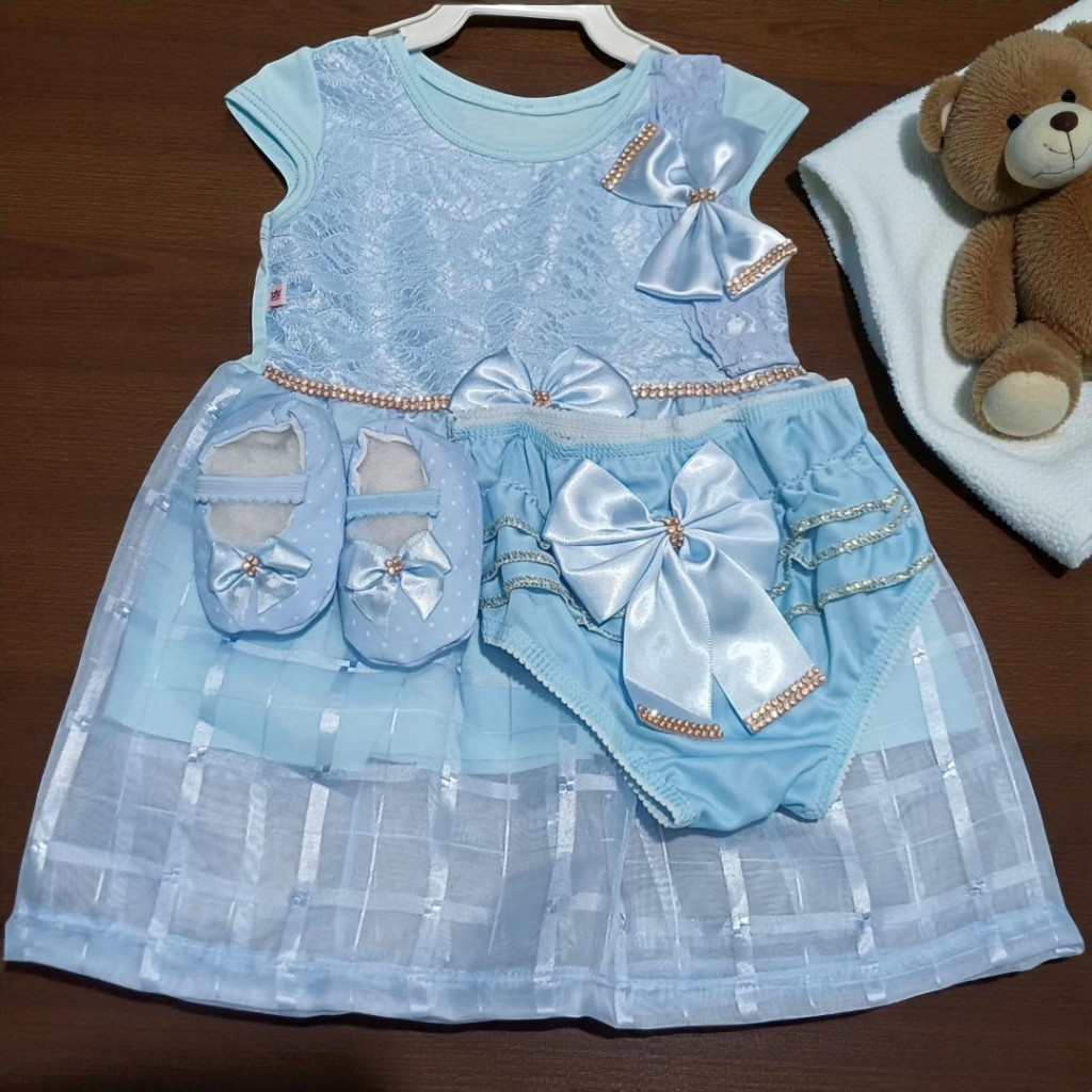 Kit 4 Peças 0-8 Meses Vestido de Renda Luxo Calcinha Laço Sapatinho Para Batizado Aniversário Natal