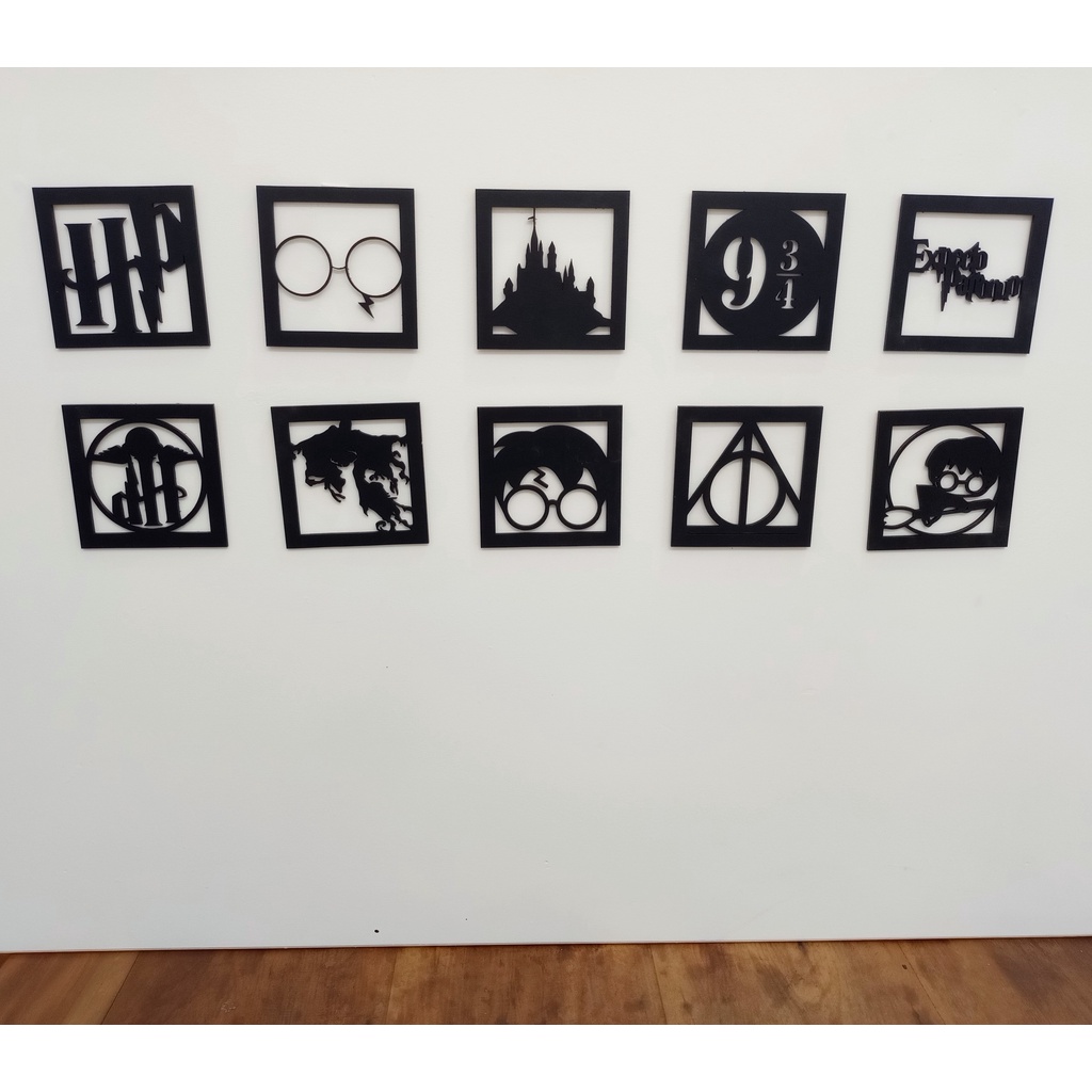 Kit 10 minis quadros decorativos vazados mdf 3mm preto fosco
