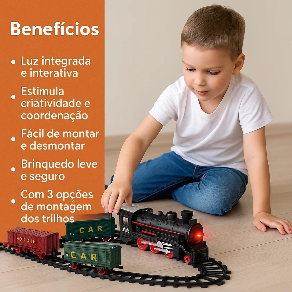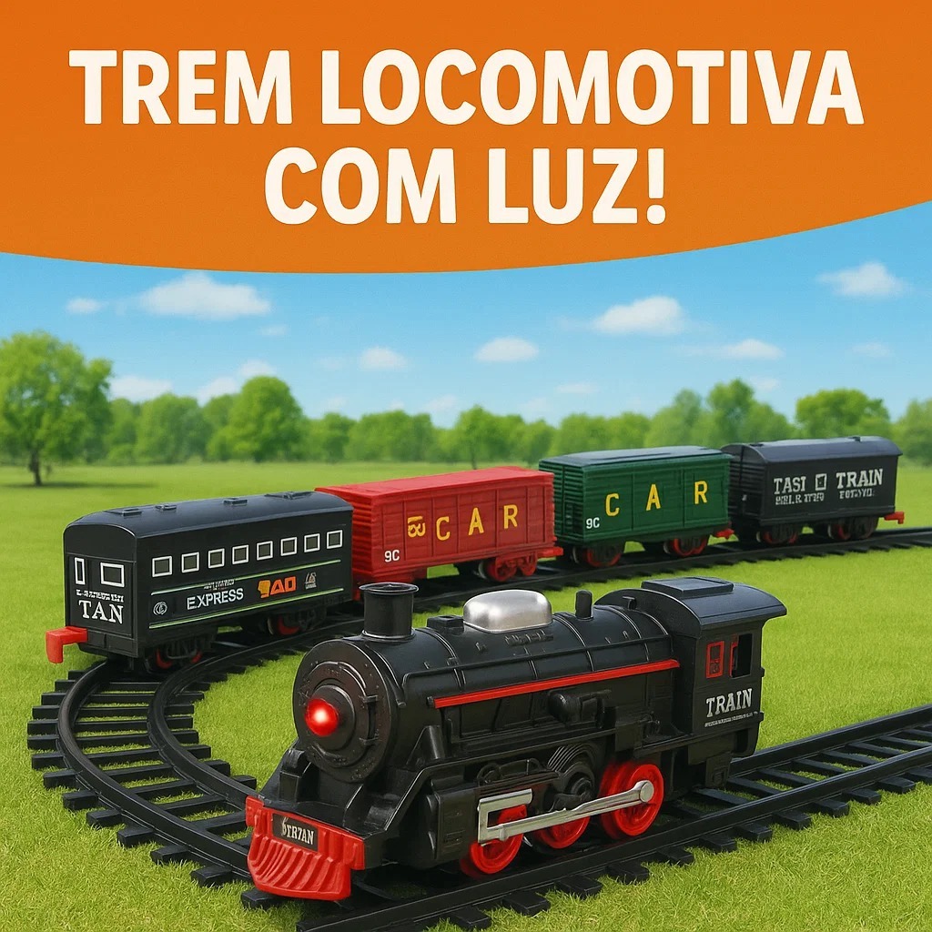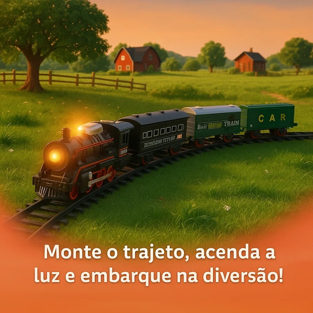 Brinquedo Trem Locomotivo Infantil Com Luz Trilhos e 5 Vagões +3 Anos