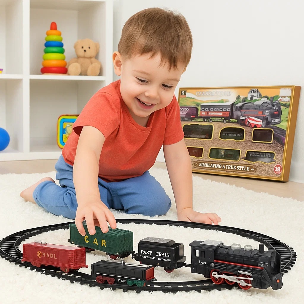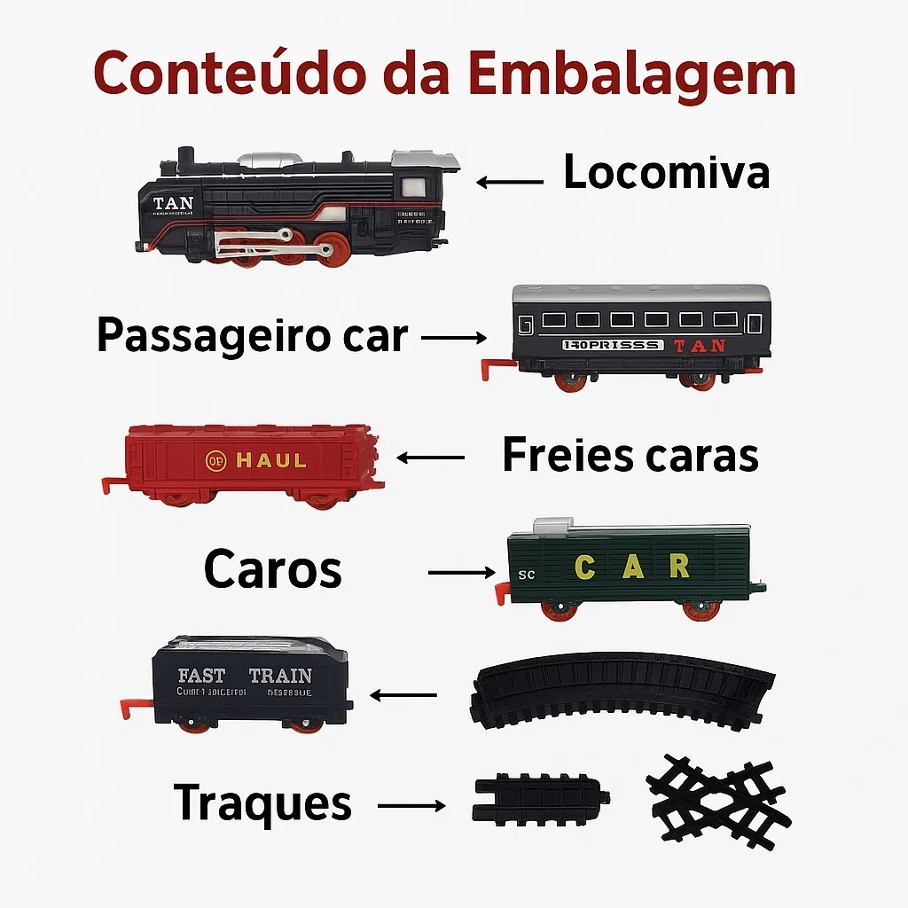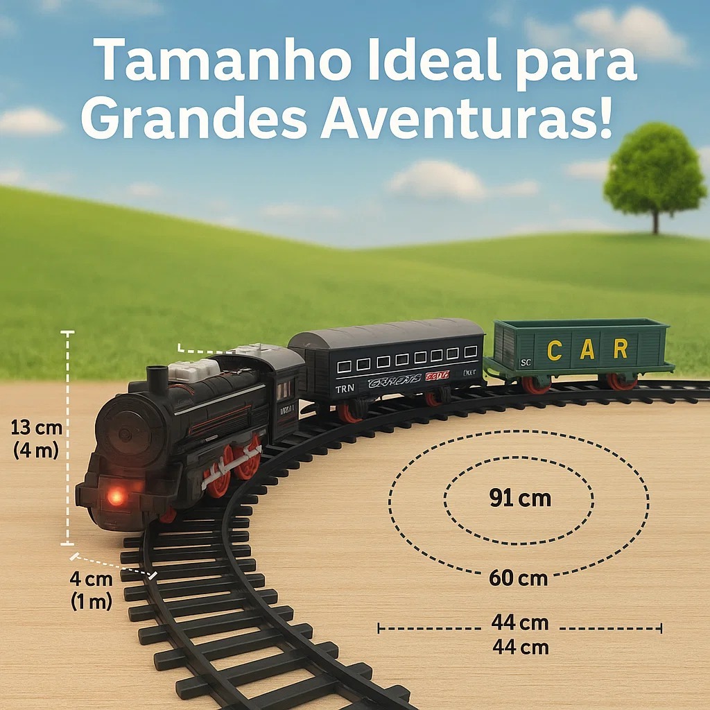 Brinquedo Trem Locomotivo Infantil Com Luz Trilhos e 5 Vagões +3 Anos