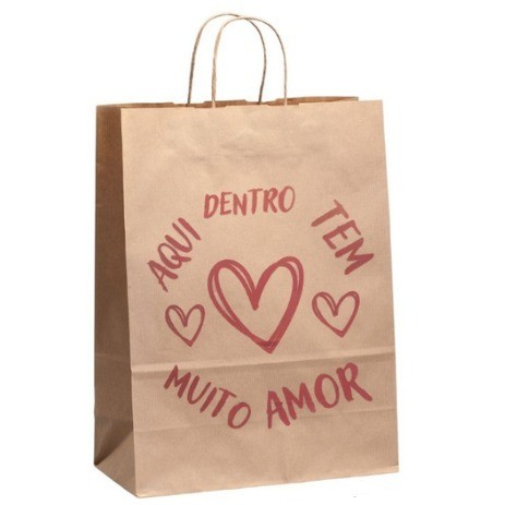 25 Sacola Kraft Amor P Tam 28x18x10,5 Menor Preço Atacado