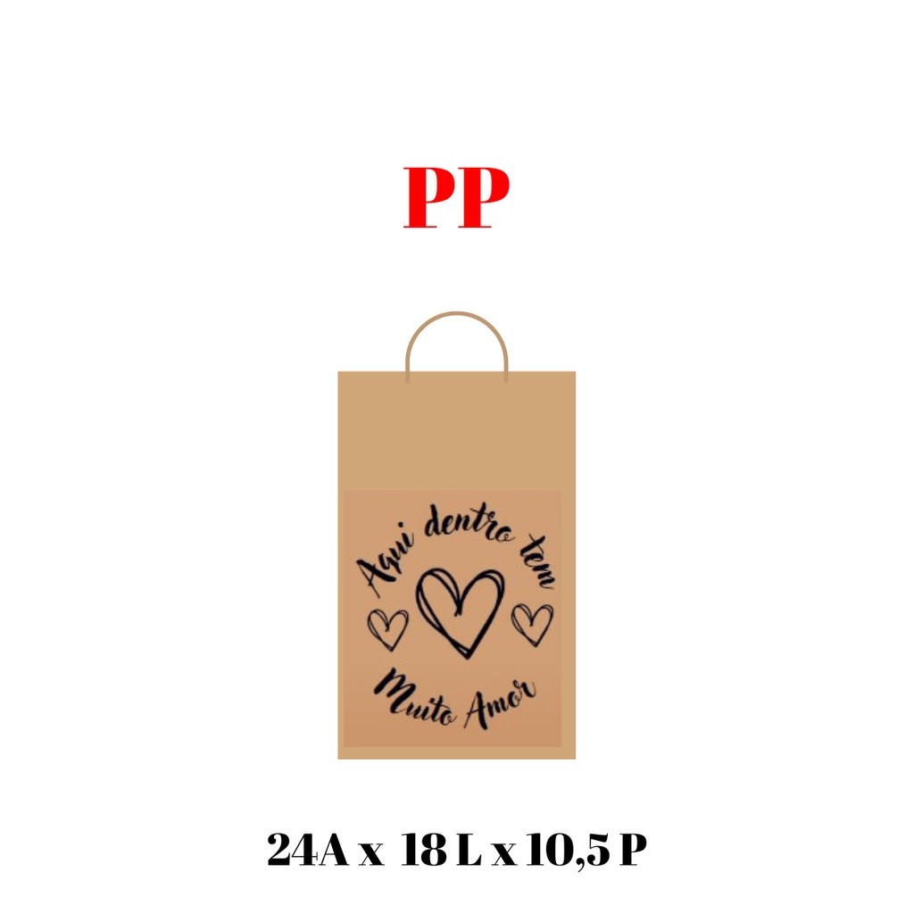 Kit 100 Sacolas Kraft Coração Tamanhos PP/P/M/G 25 Cada