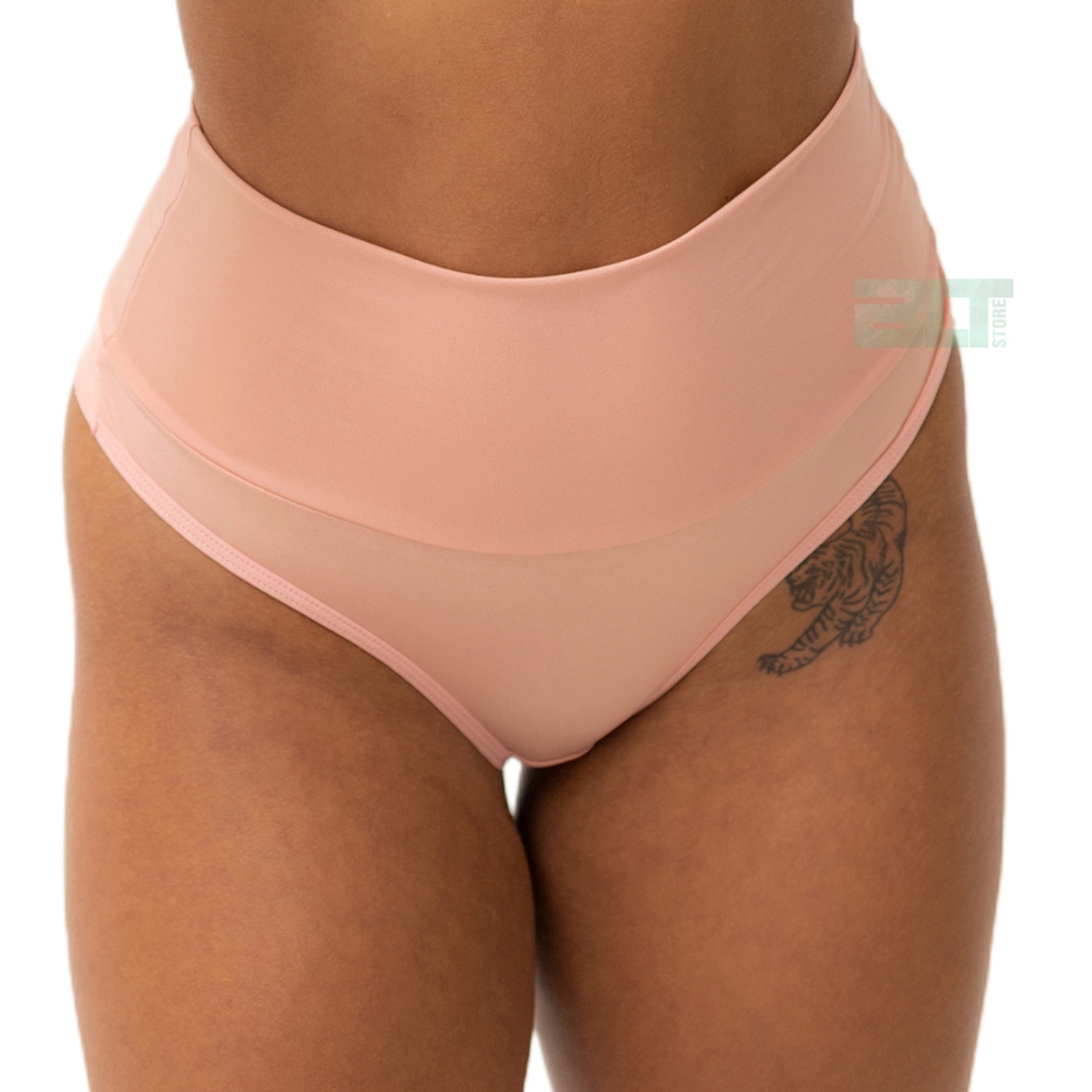 Kit 5 Calcinha Fio Duplo Embutida Cós Alto Compressão Leve