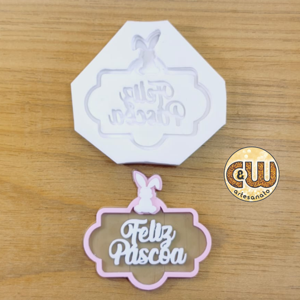 Molde de Silicone Feliz Páscoa / Pascoa / Coelho - Decoração, Confeitaria e Artesanato