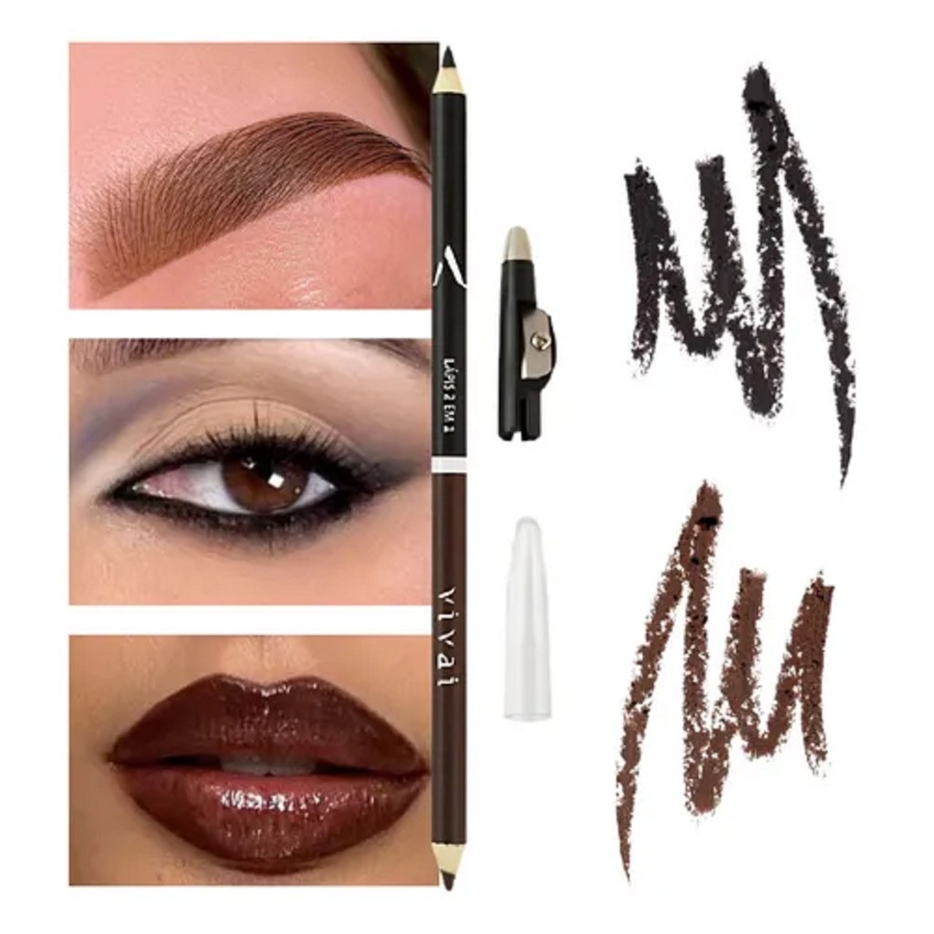 Lápis Olhos Boca Sobrancelhas Apontador Preto Marrom Vivai