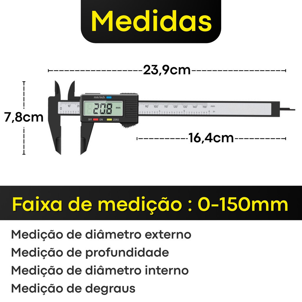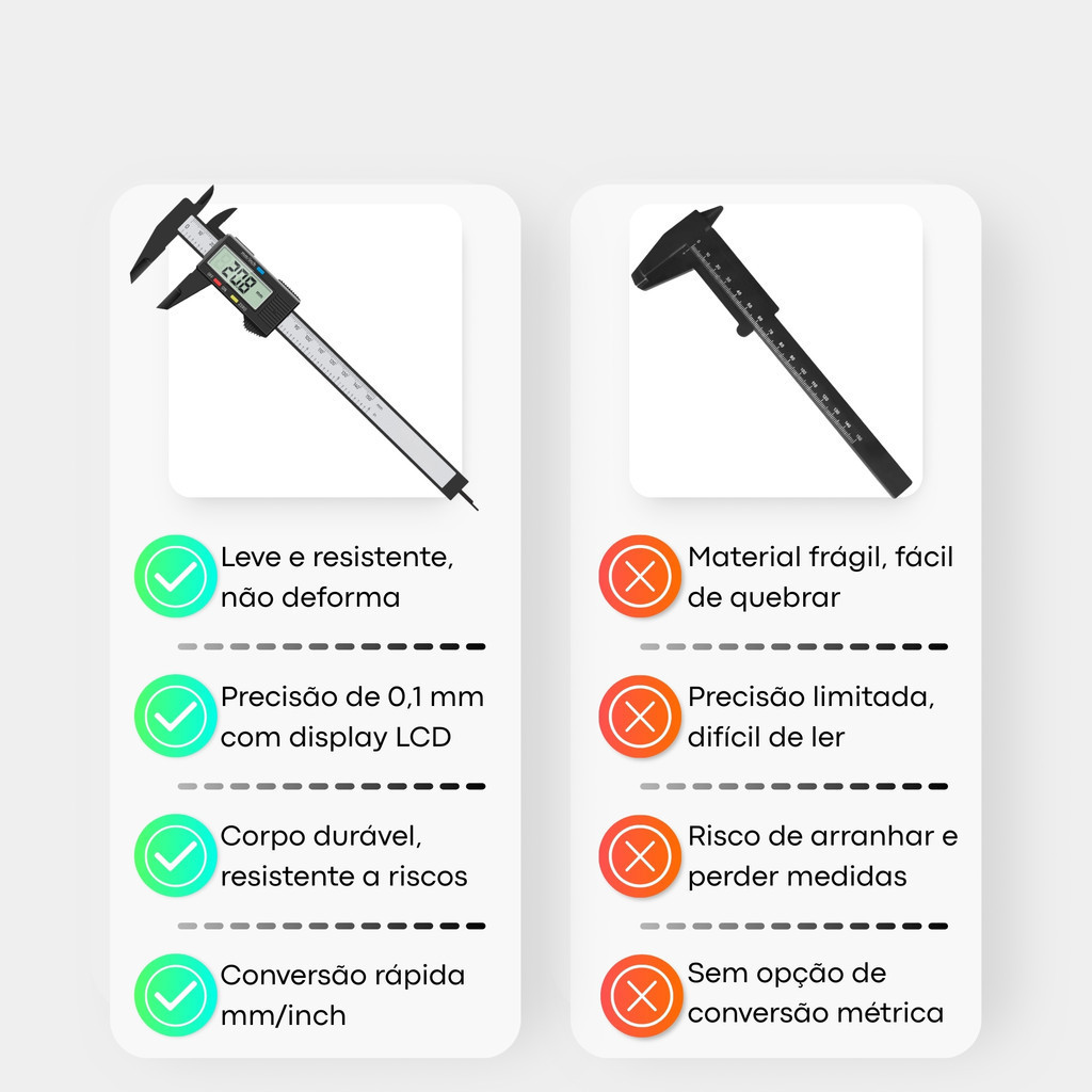 Paquímetro Digital com Display LCD Medição Rápida, Precisa e Fácil Visualização em Qualquer Ambiente