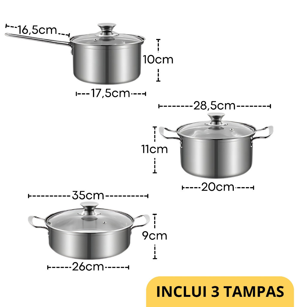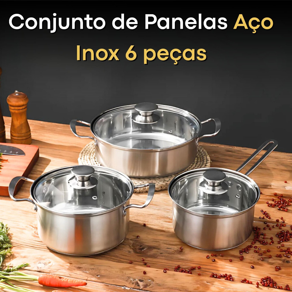 Jogo De Panelas Antiaderente Inox Cor Prata Para Indução ou Cerâmica
