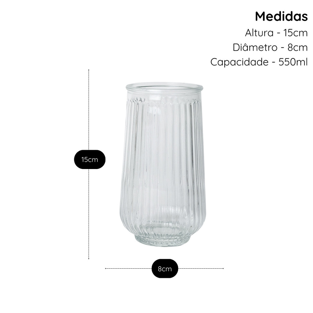 Kit 2 Vasos de Vidro Canelado Slim 15cm - 550ml