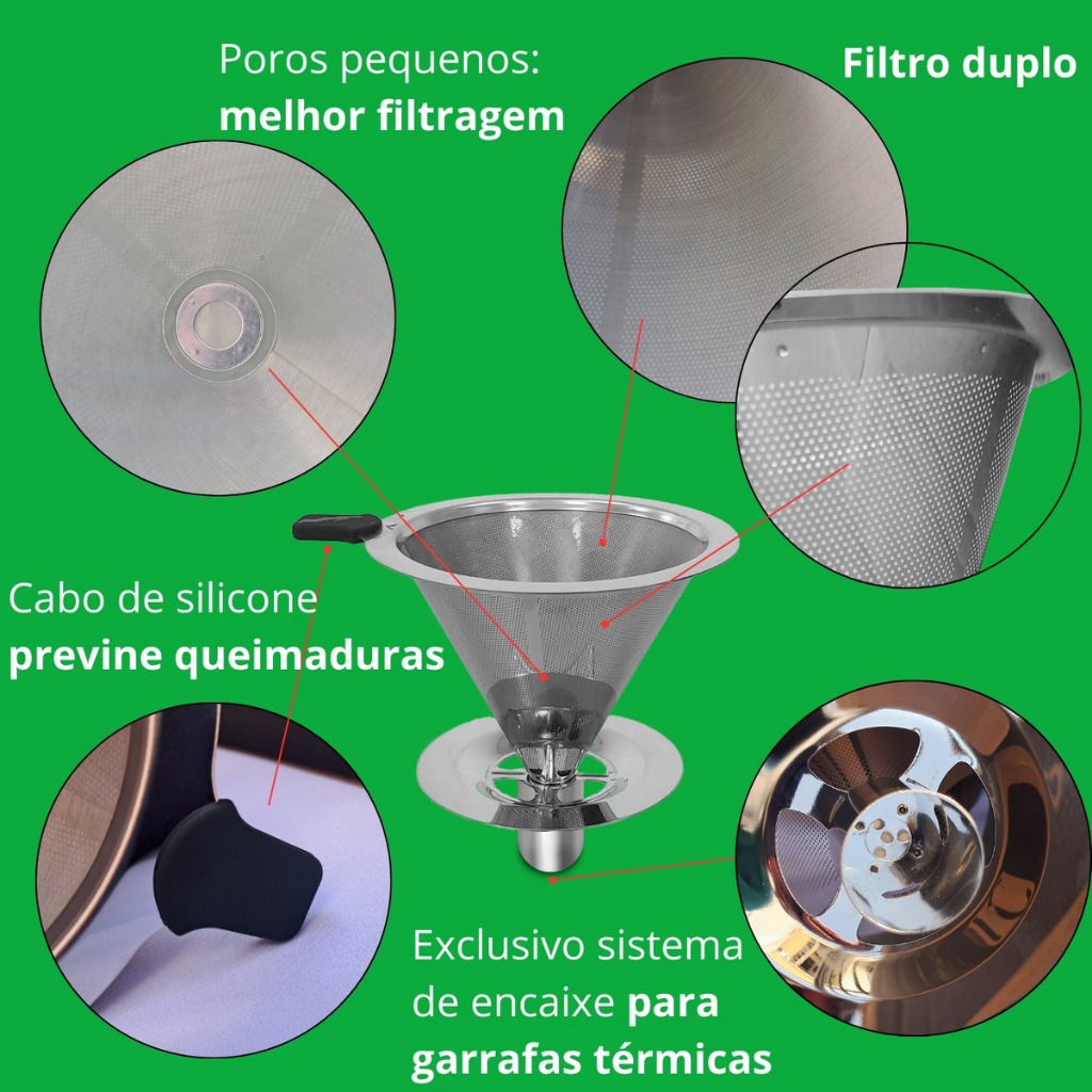 Coador Café Aço Inox T 103 Reutilizável Sem Papel Unitermi
