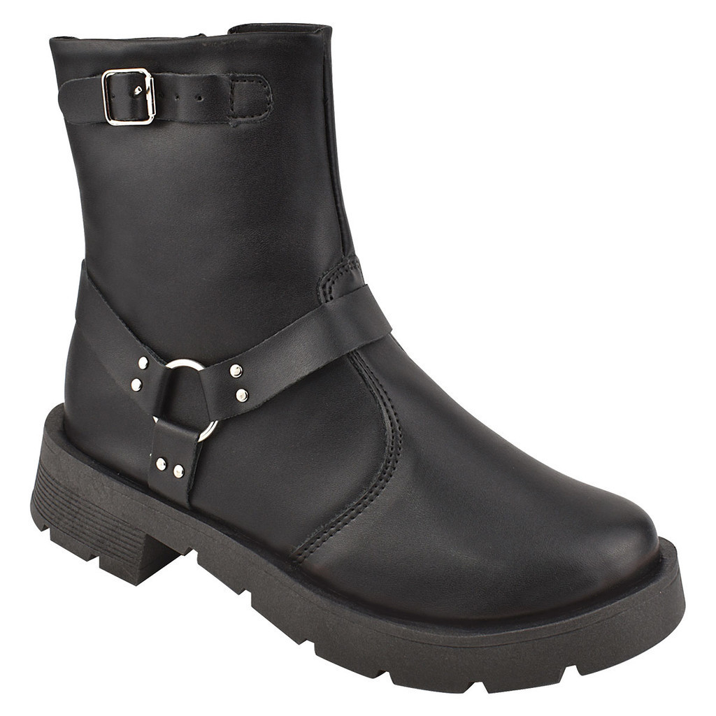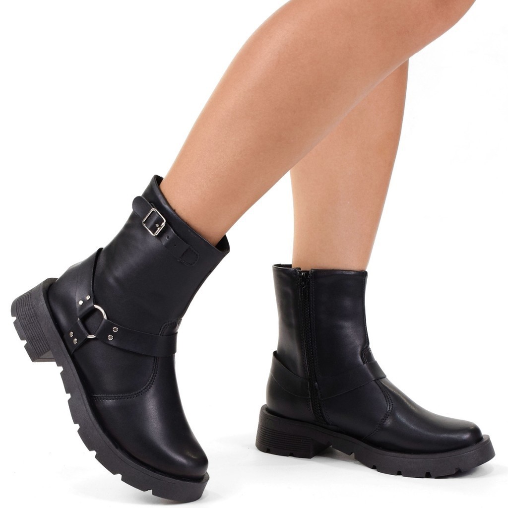 Ankle Boots Bota Feminina Clássica Ziper Lateral Bota Coturno Feminina Cano Médio Tratorado Fivela Plataforma