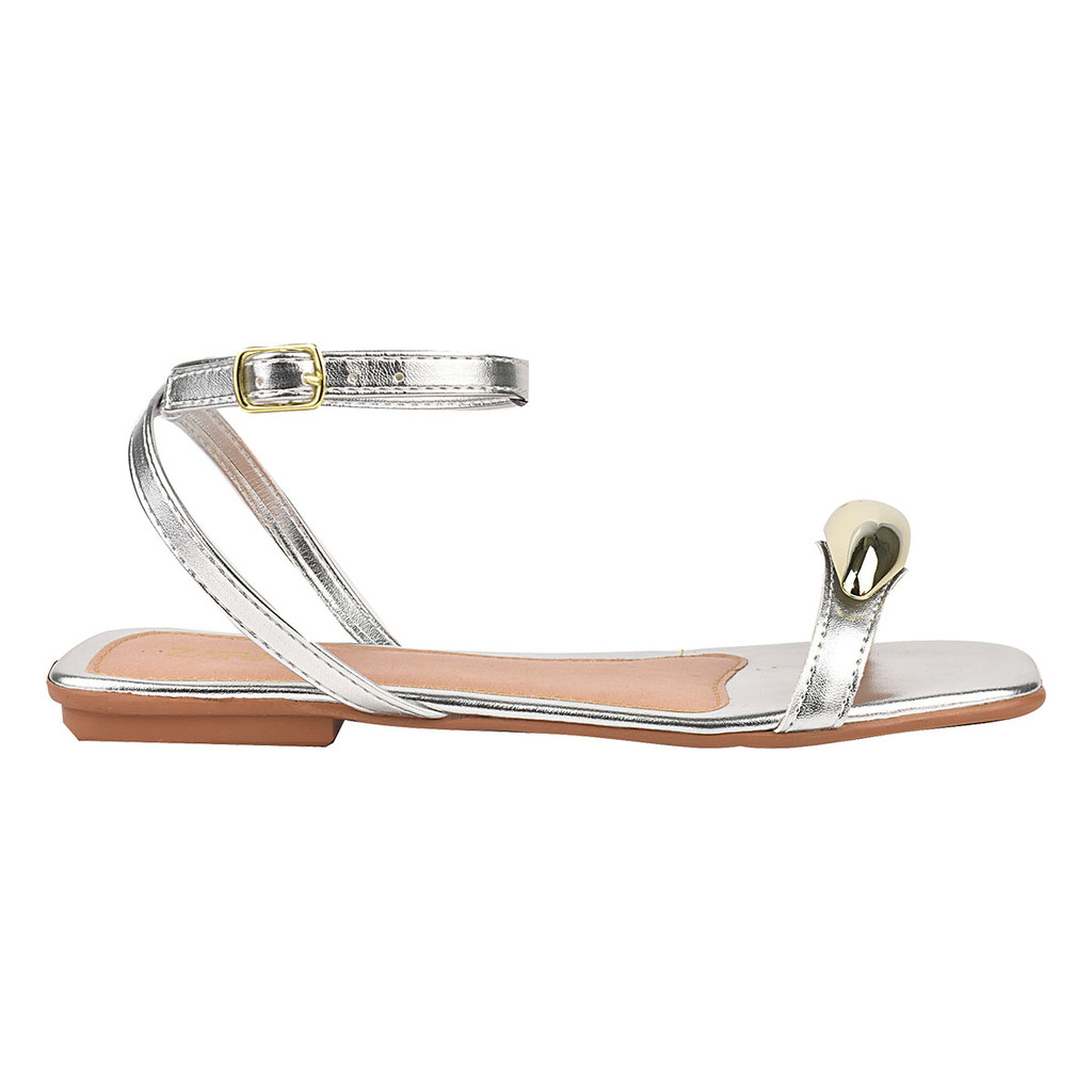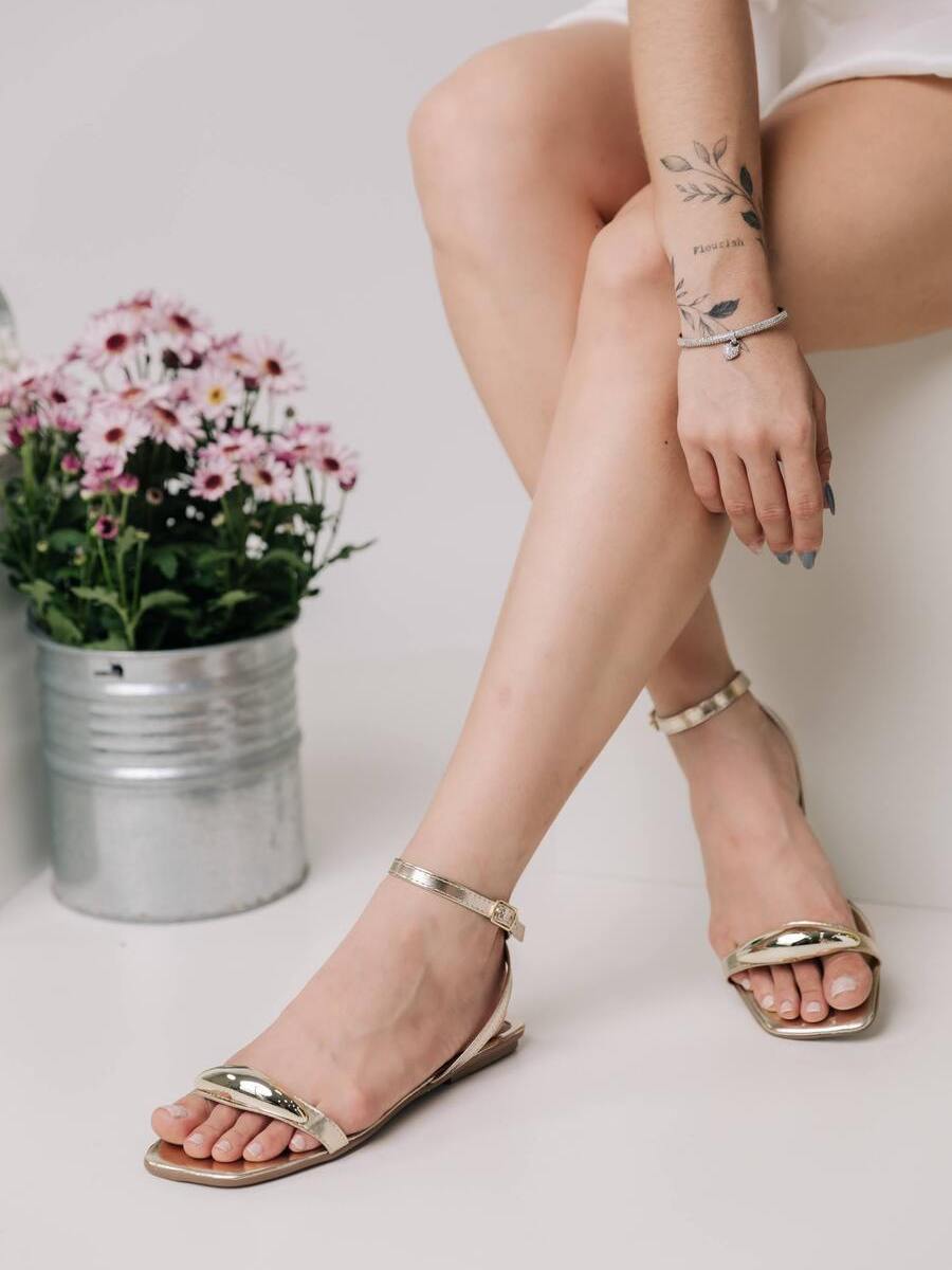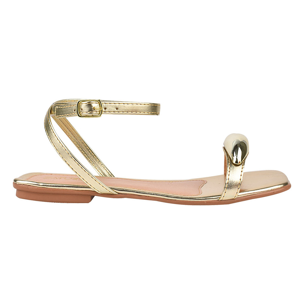 Sandália Feminina Rasteira Bico Quadrado Slim Detalhe Dourado Casual Elegante confotavél Festa