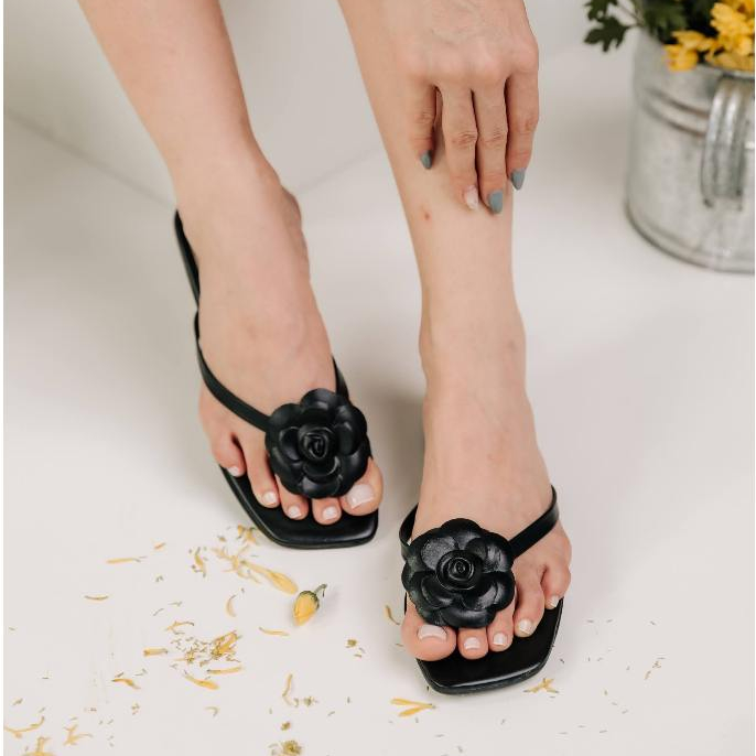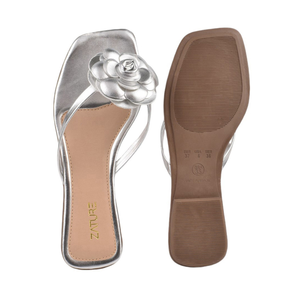 Sandália Feminina Rasteira Rasteirinha Enfeite Flor Metalizada Confortável Verão Festa