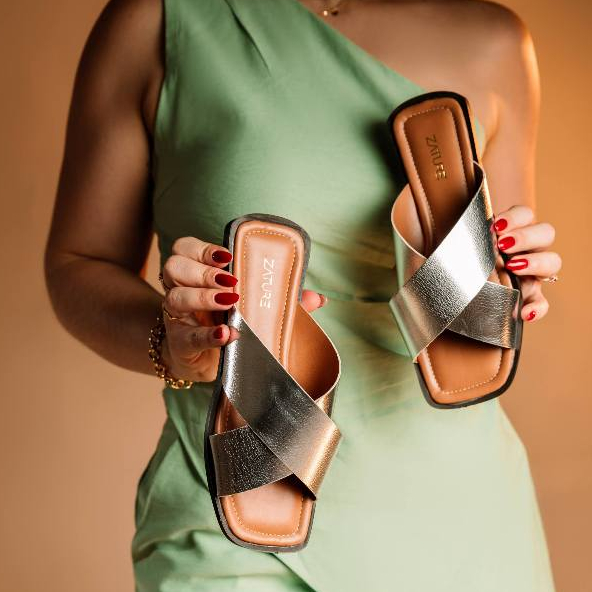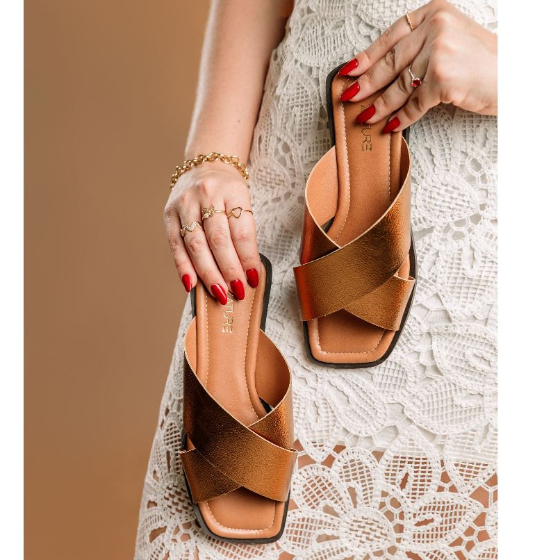 Sandália Feminina Rasteirinha Confortável com Tiras Cruzadas e Brilho Verão 2026