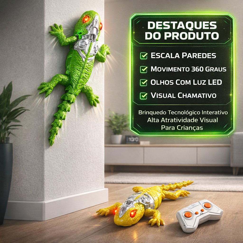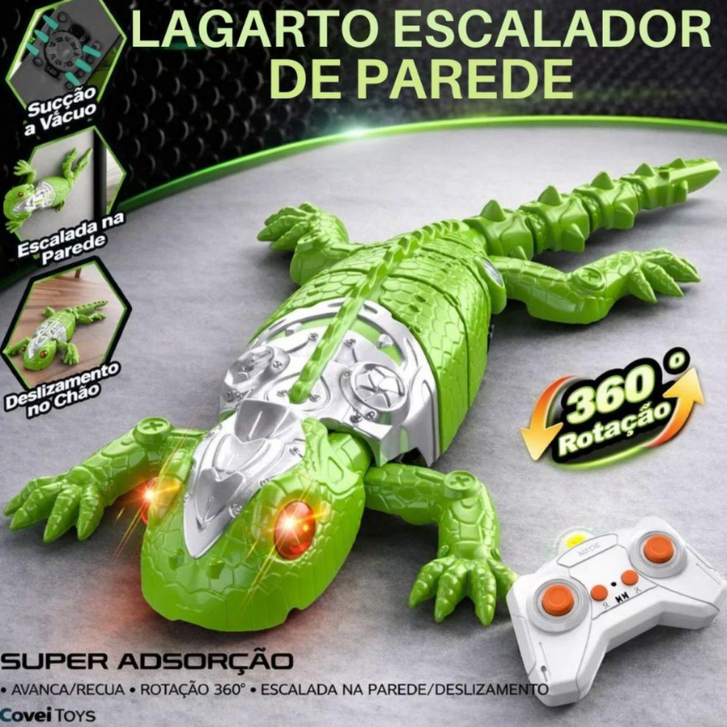 Lagarto Escalador Parede Controle Remoto 360 Graus Sucção Vácuo LED Wall Crawler Rastejante Infantil