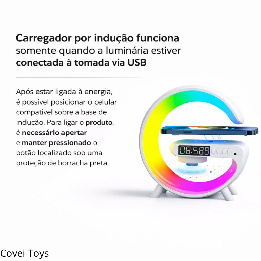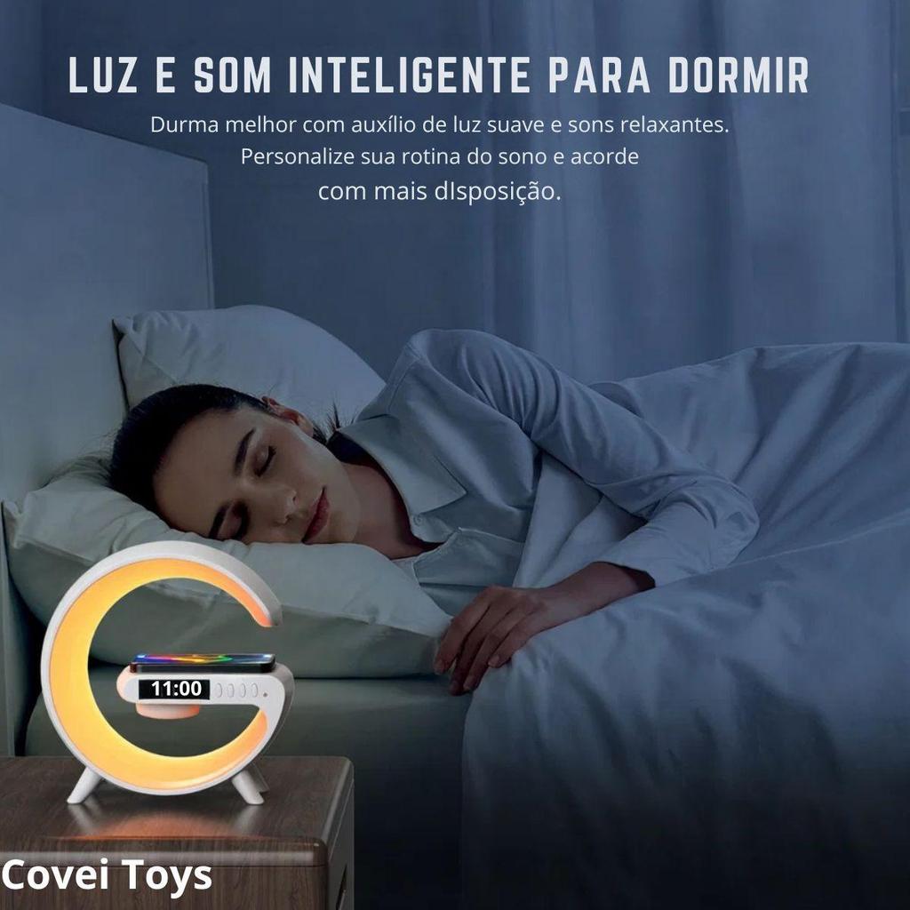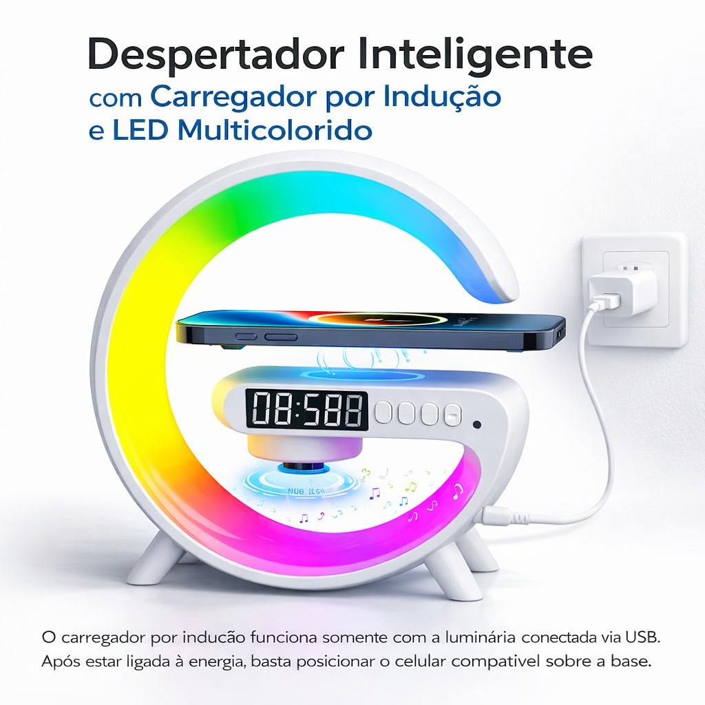 Luminária Despertador Com Luz Led Bluetooth Caixa De Som Relógio Digital Carregamento Indução Design Moderno Abajur