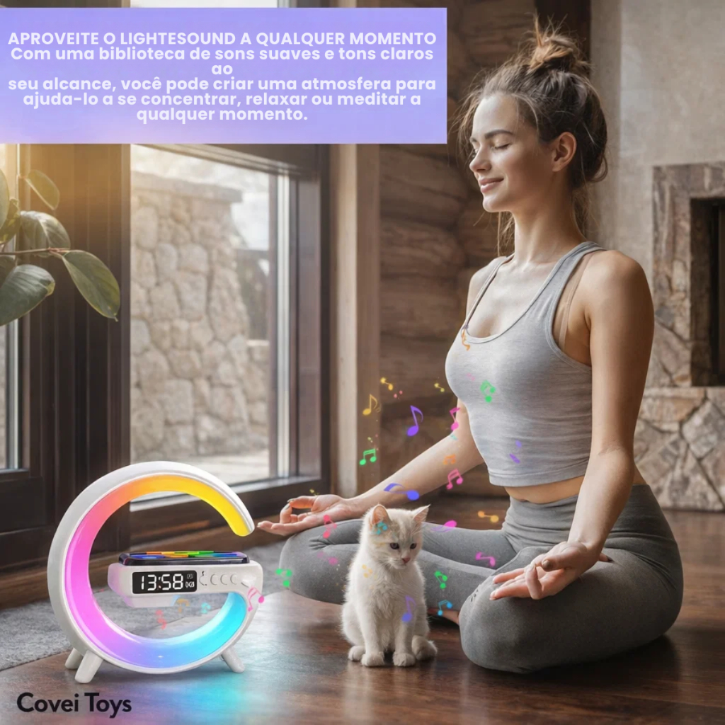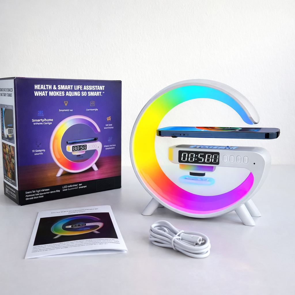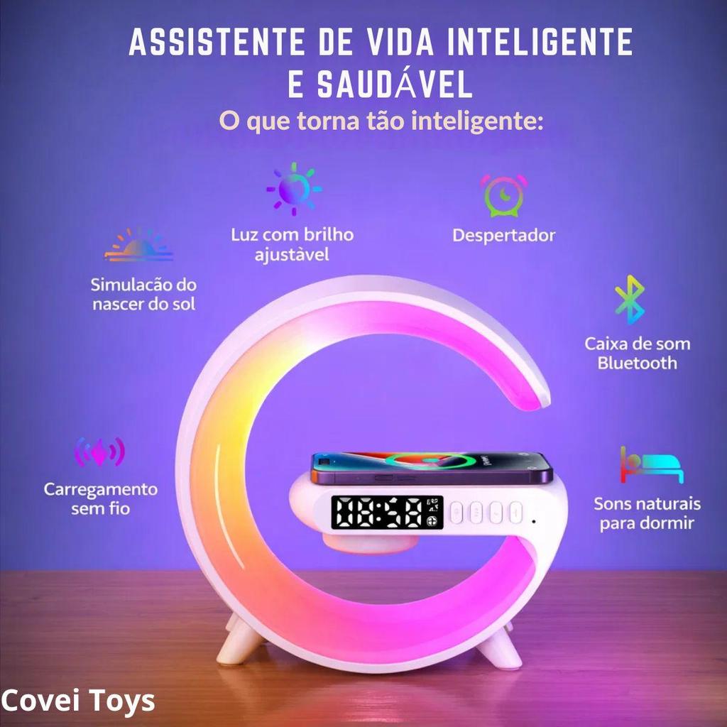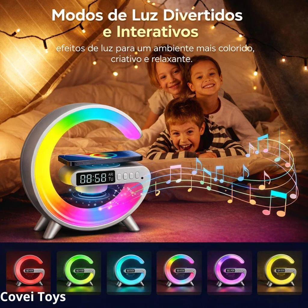Luminária Despertador Com Luz Led Bluetooth Caixa De Som Relógio Digital Carregamento Indução Design Moderno Abajur