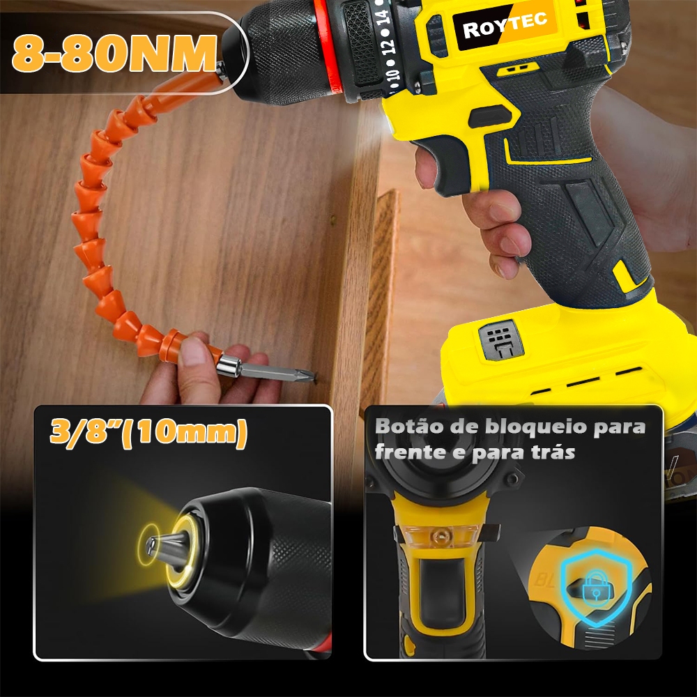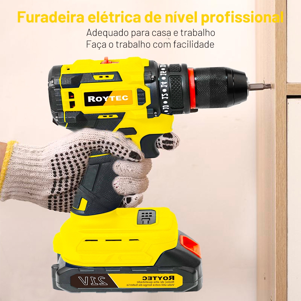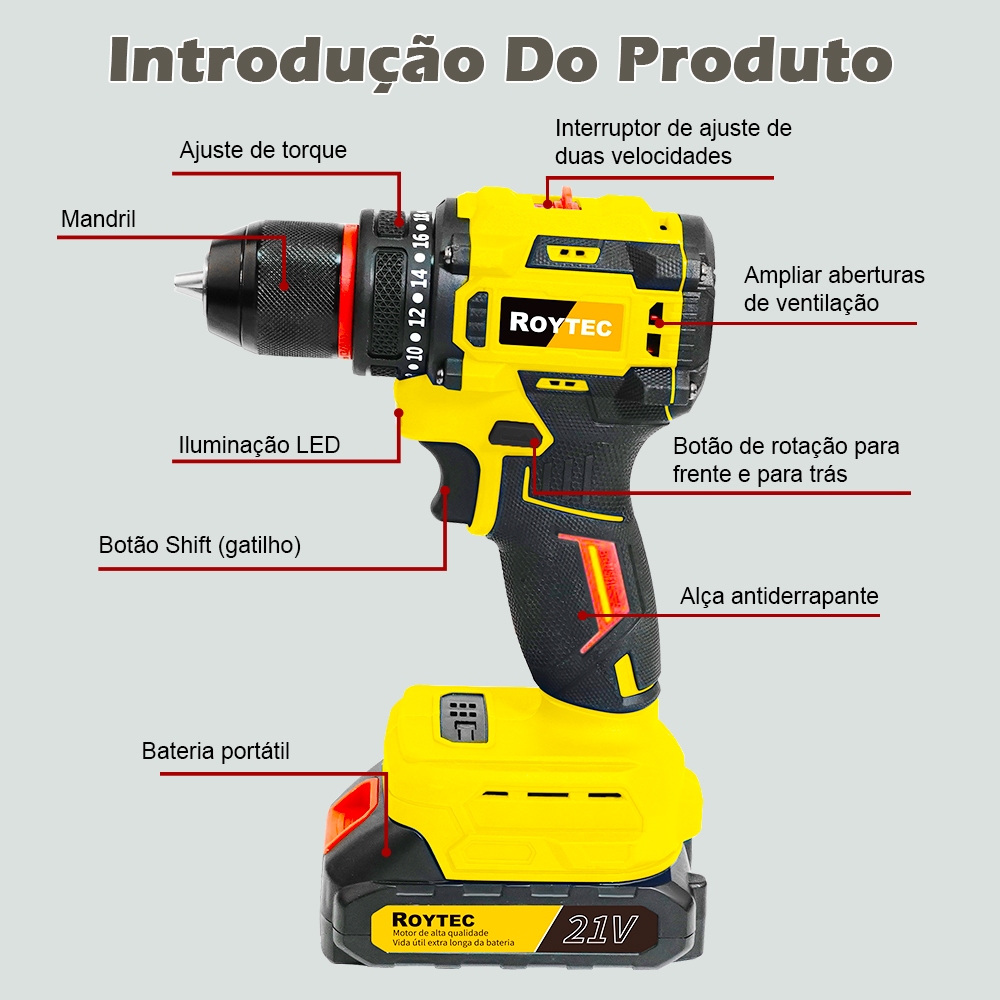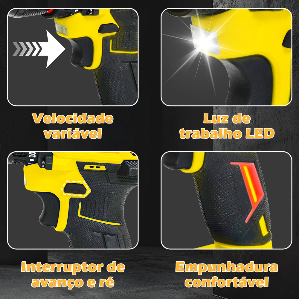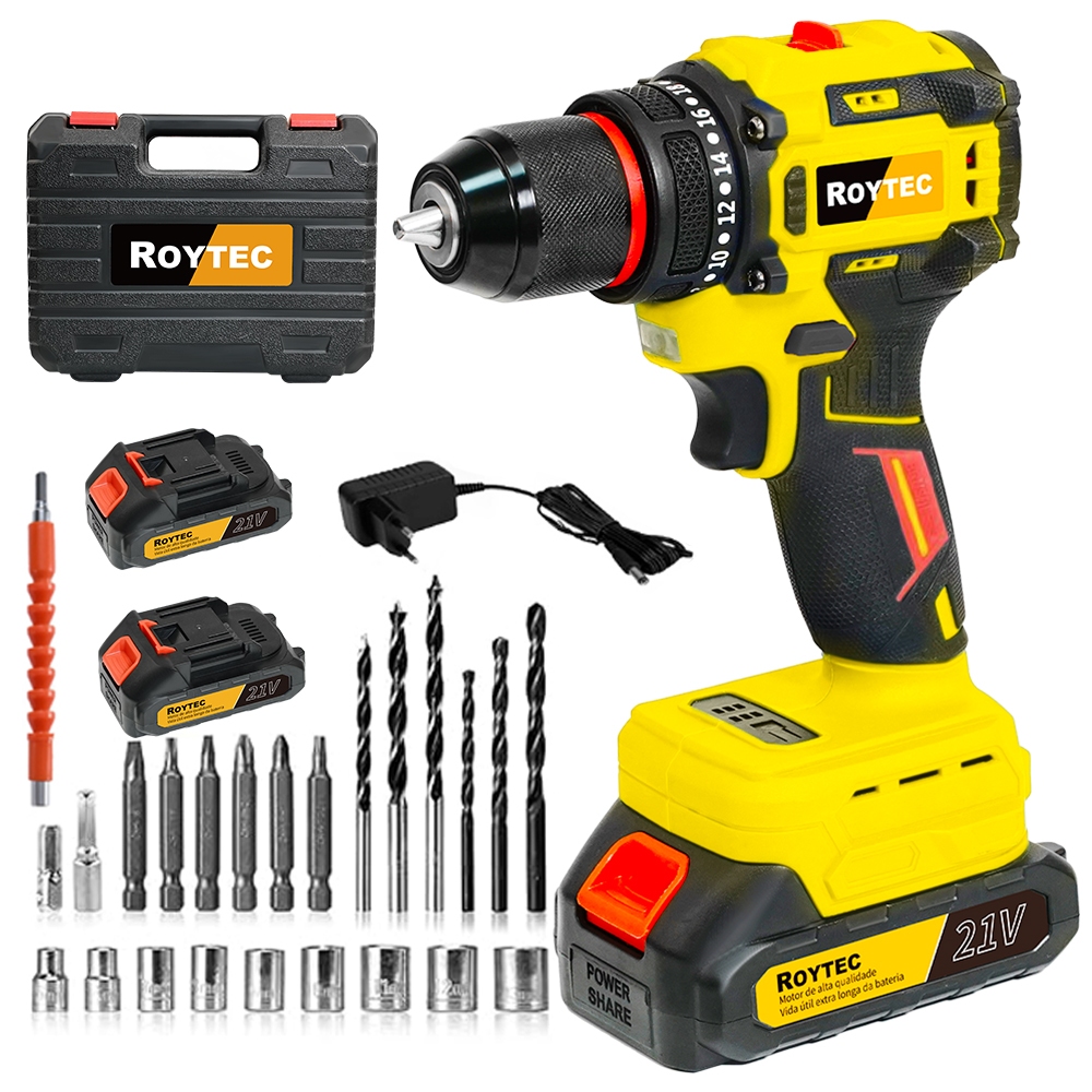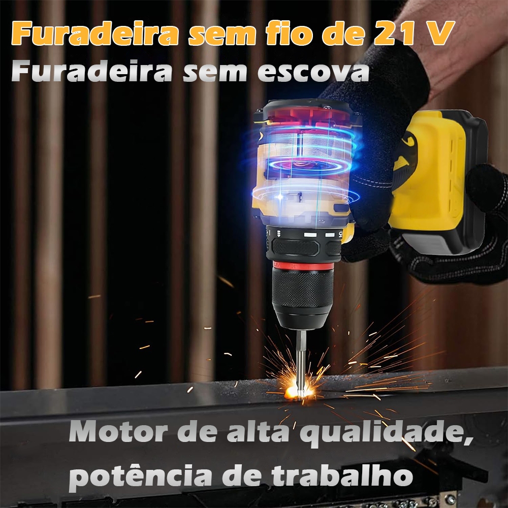 Parafusadeira Furadeira Função de impacto 21V 2 Baterias Com Maleta Acessórios Completo sem escovas