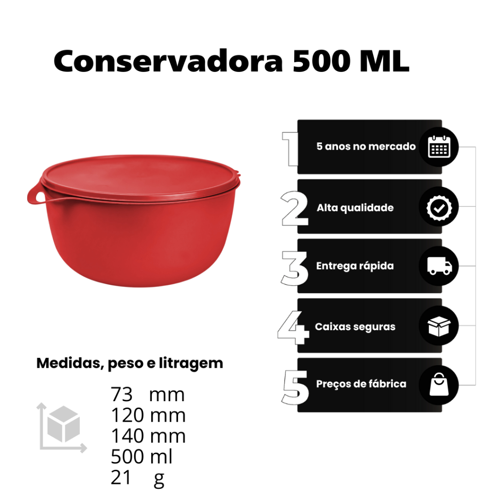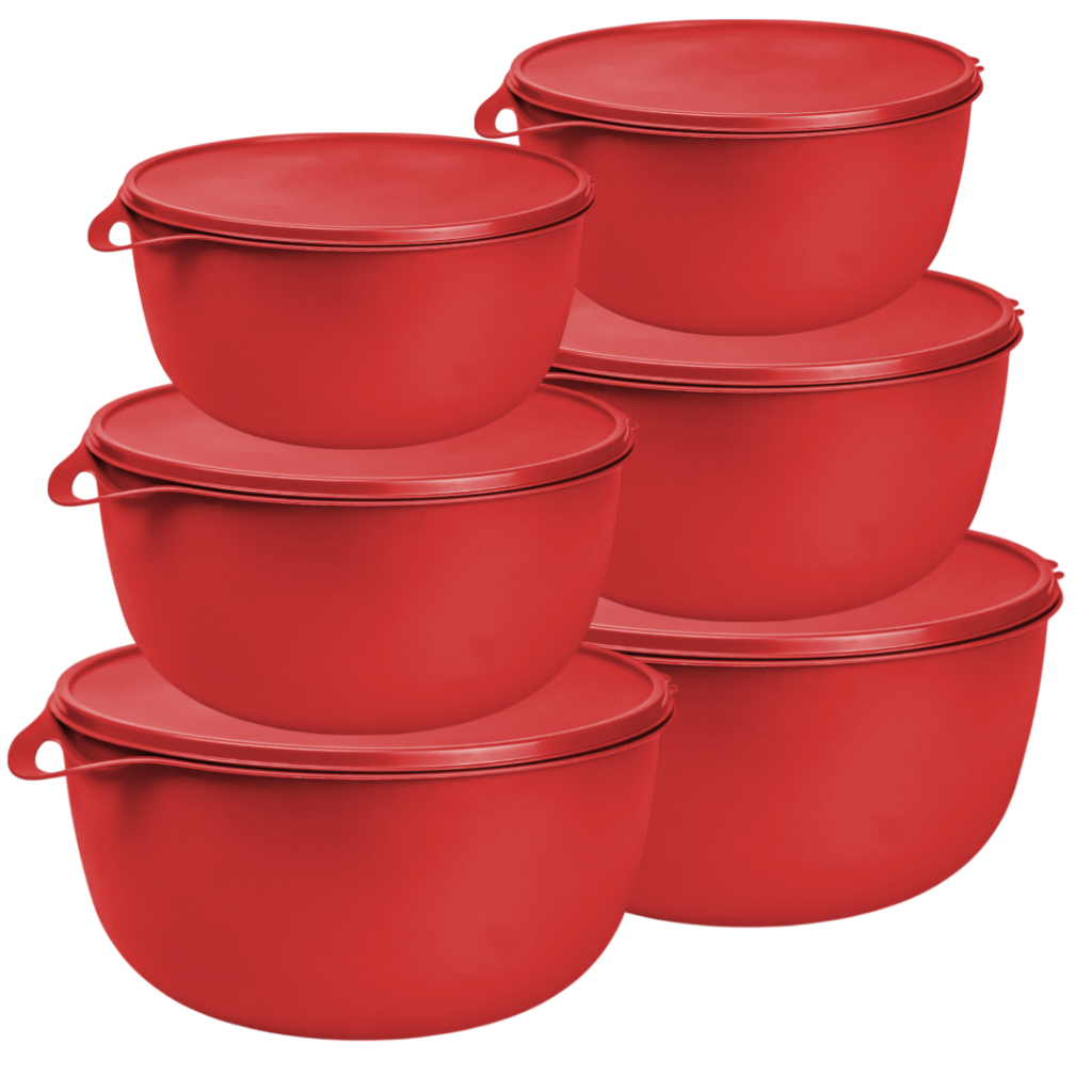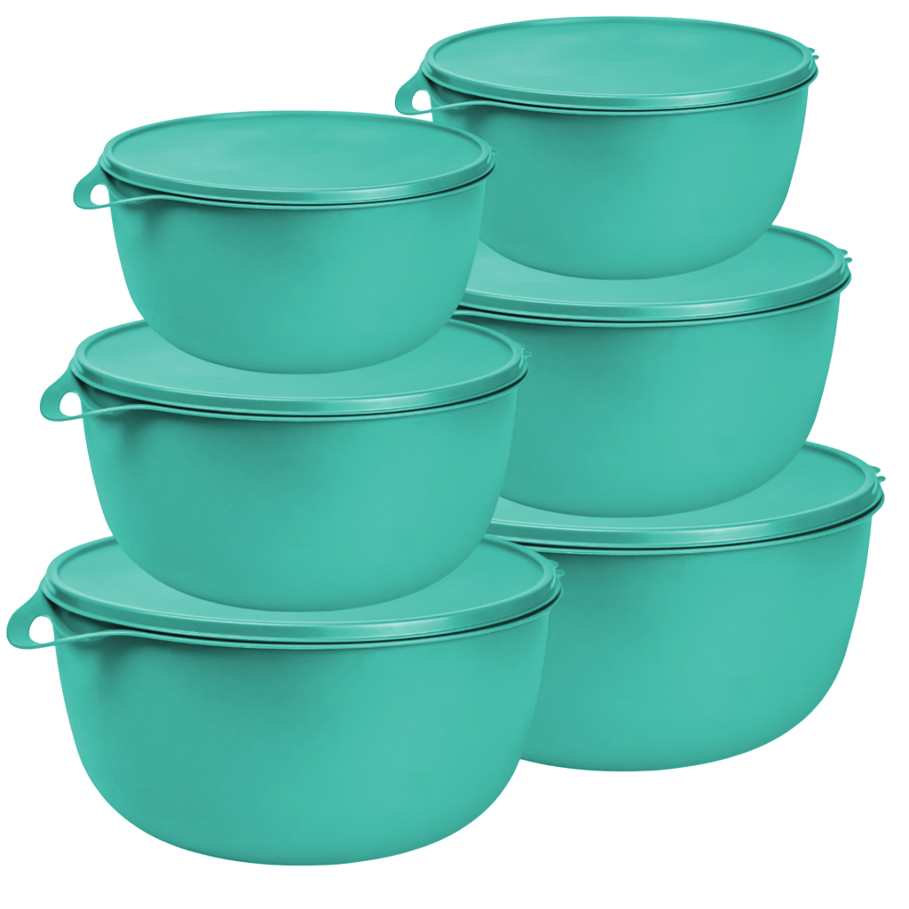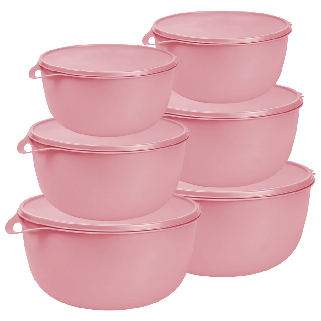 Kit 6 Potes Redondos Bolws Herméticos PMG de Plástico com Tampa e Alça