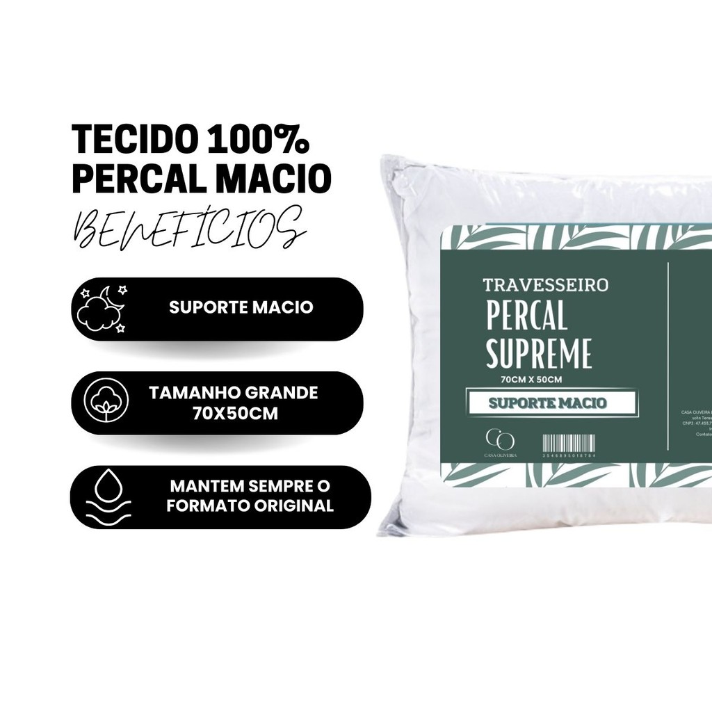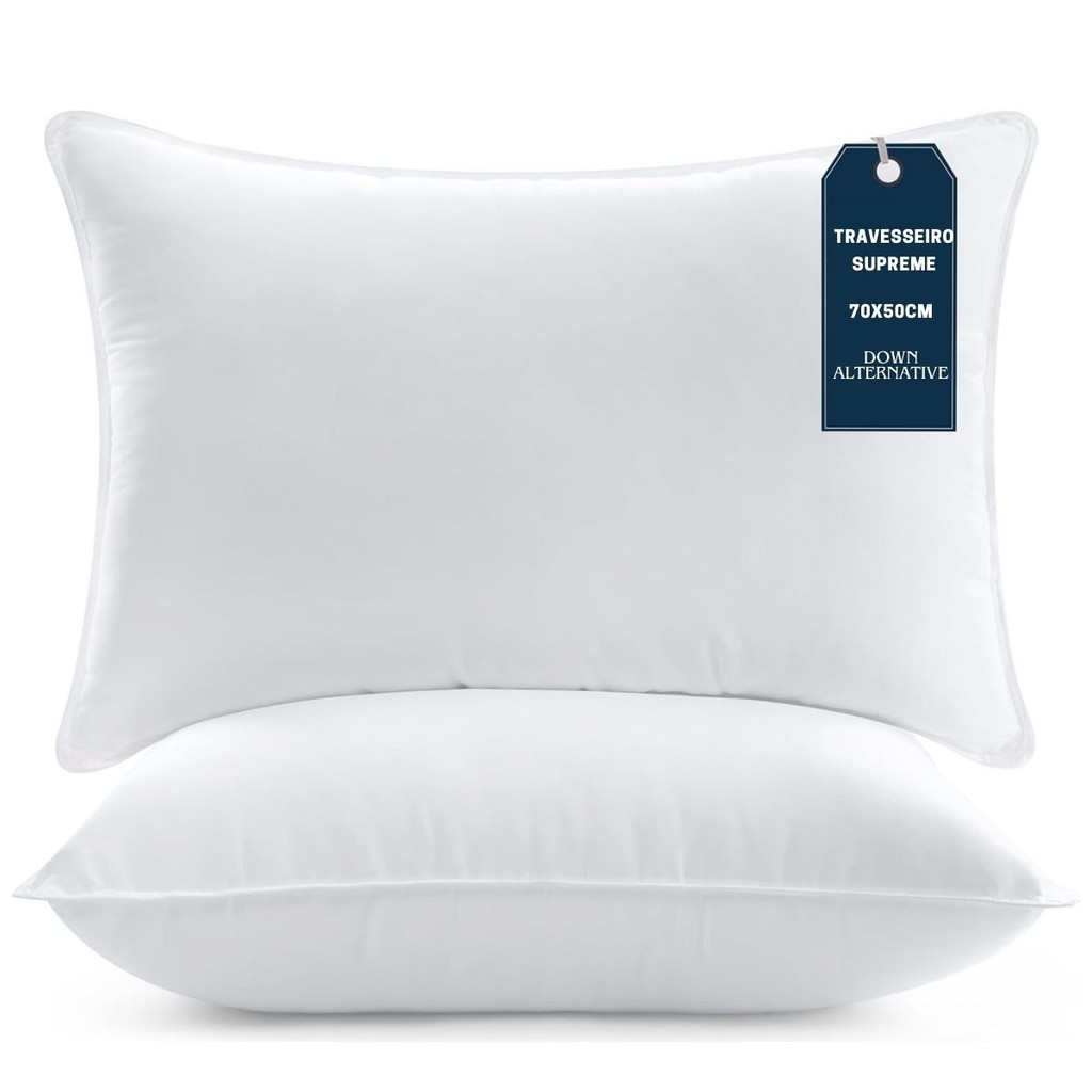 Kit 2 Travesseiro Antialérgico Supreme Macio 70x50cm Confortável Lavável Em Máquina Fibra Siliconada