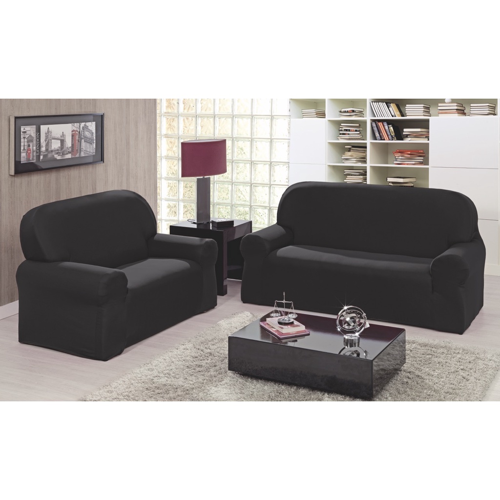 Capa de Sofá Kit 2 e 3 Lugares Tradicional Favinho Preto