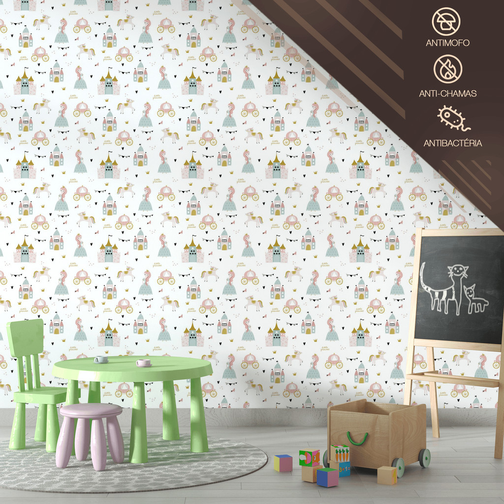 Papel de Parede Princesa Castelo Delicado Adesivo Fácil Aplicação