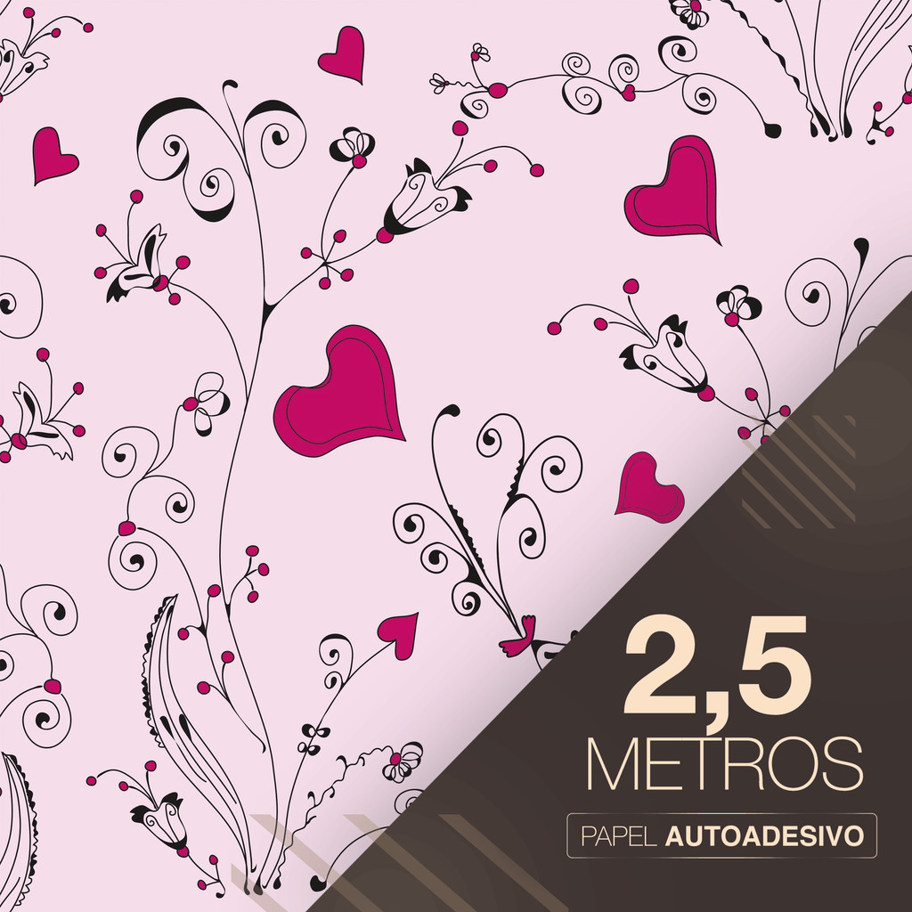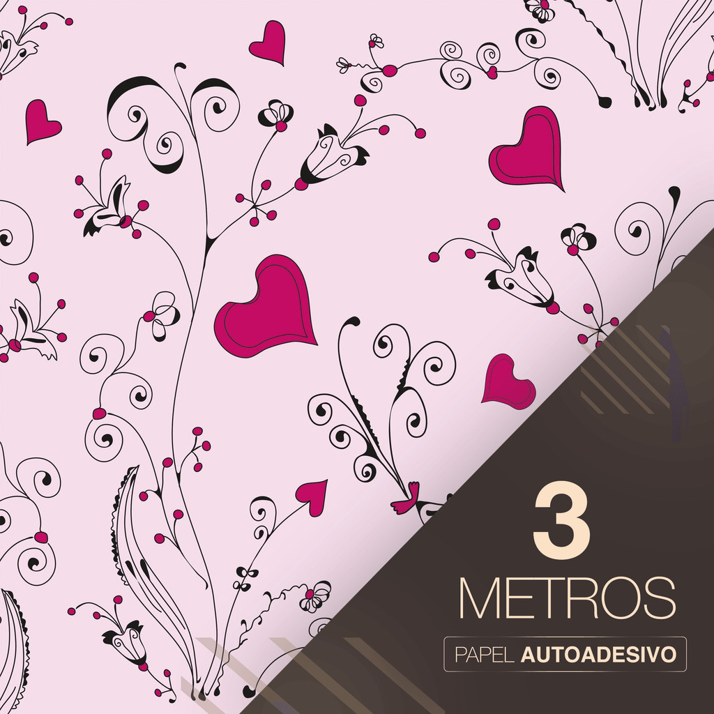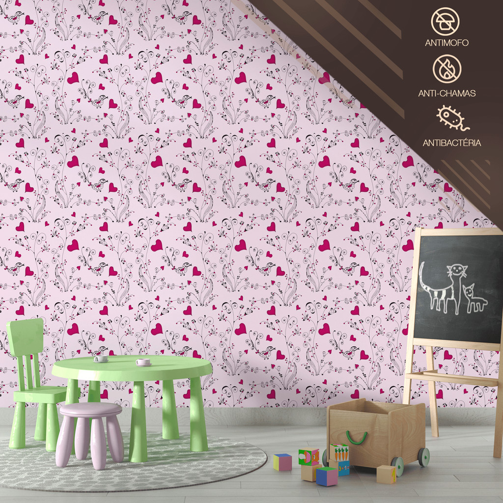 Papel de Parede Rosa Ramos de Corações Adesivo Fácil Aplicação