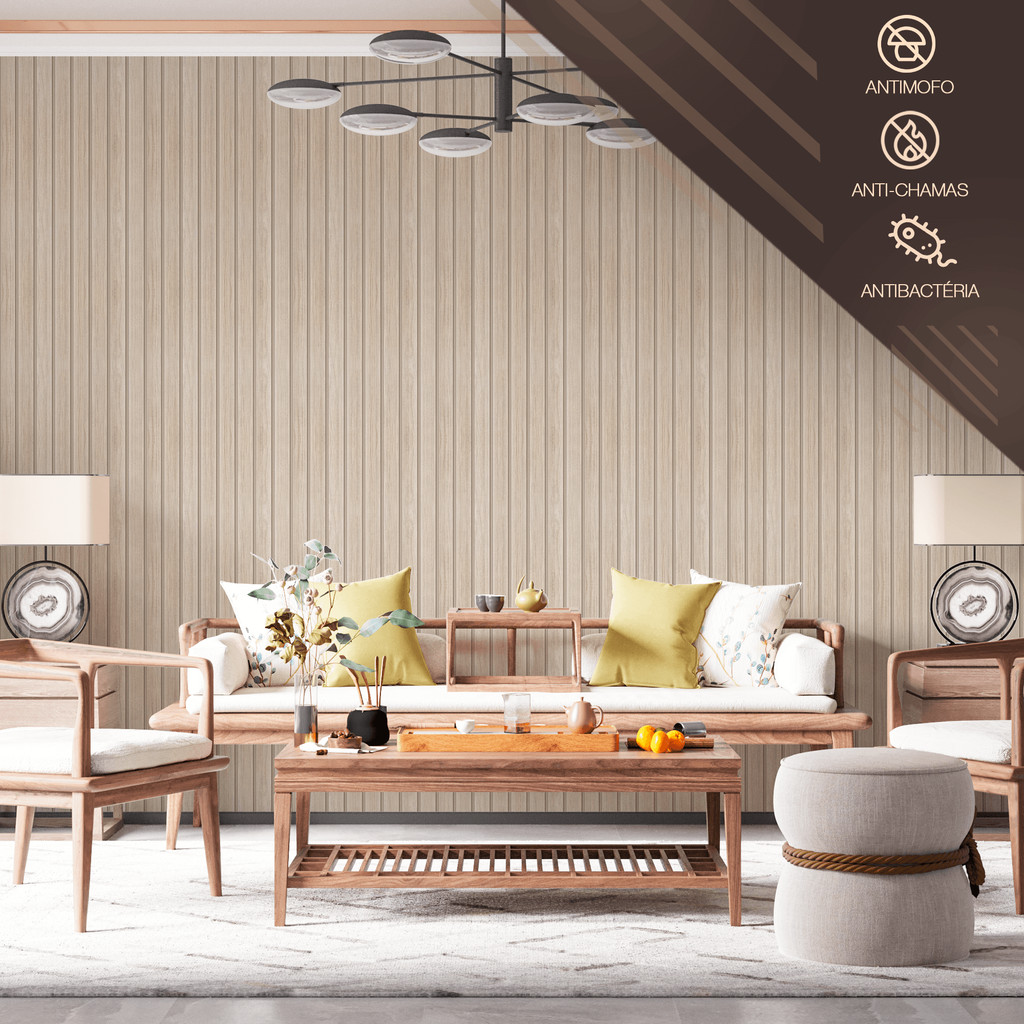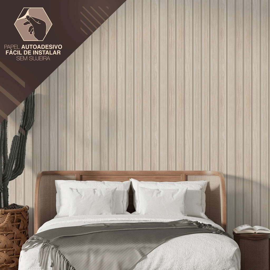 Papel de Parede Ripado Bege Claro Rústico Adesivo Fácil Aplicação