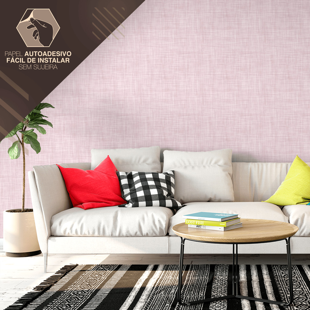 Papel de Parede Efeito Linho Rosa Claro Adesivo Fácil Aplicação