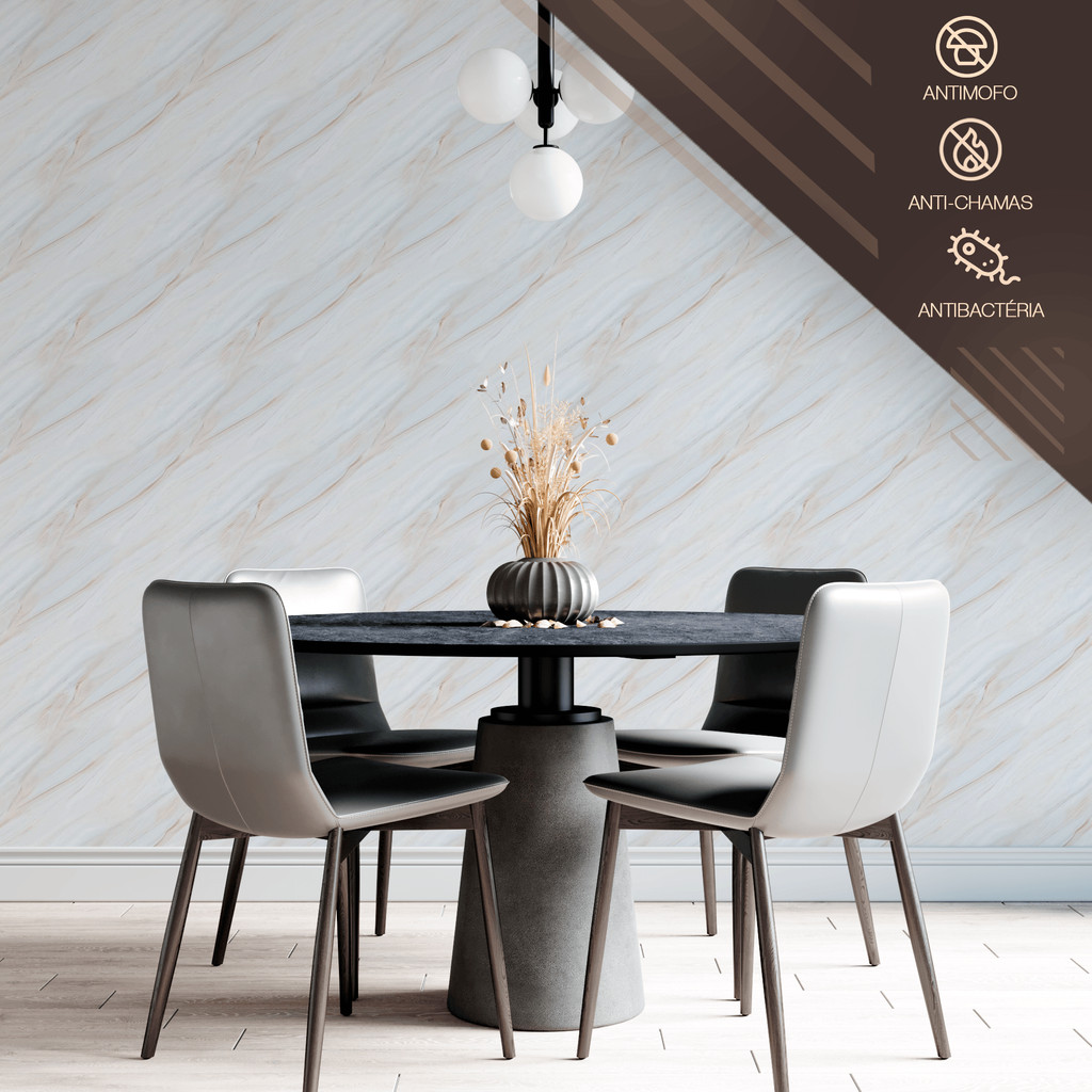 Papel de Parede Mármore Bege Claro Branco Adesivo Fácil Aplicação