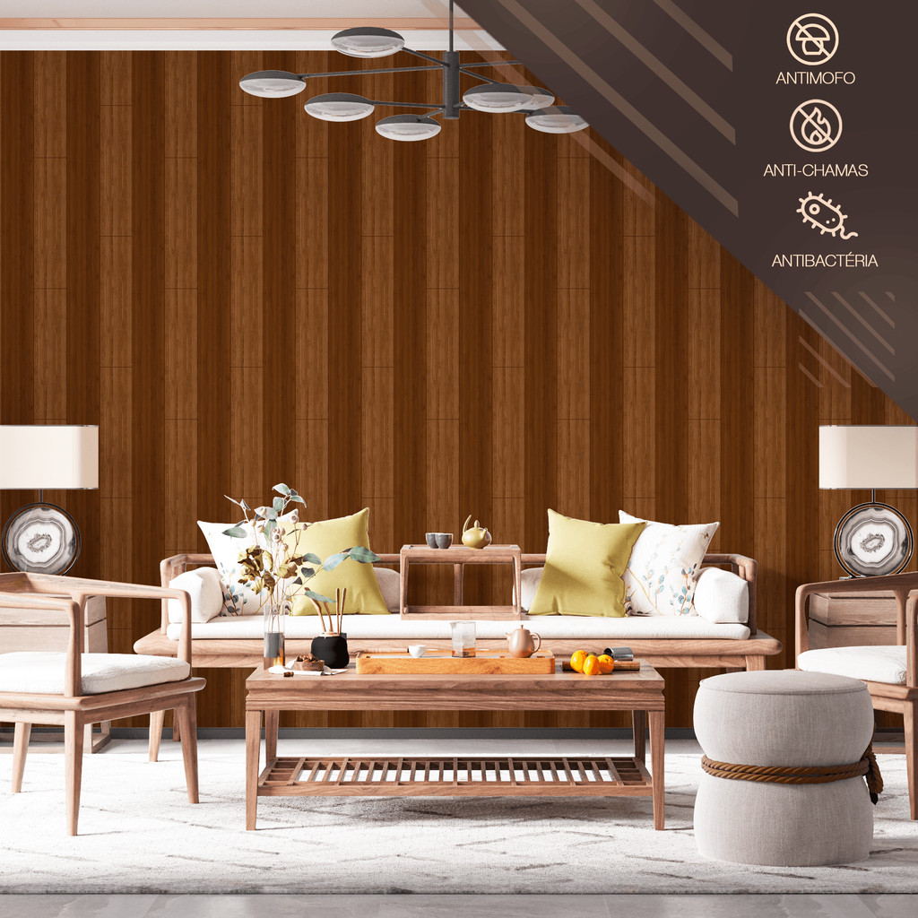Papel de Parede Ripa Madeira Escura Natural Adesivo Fácil Aplicação